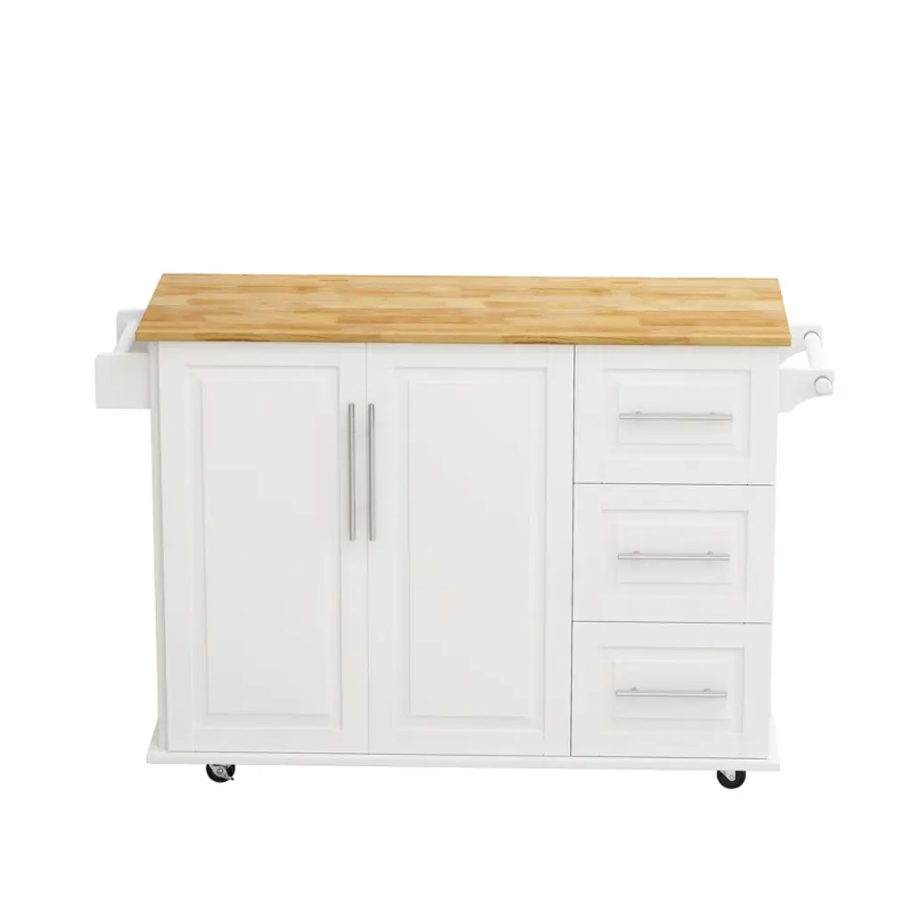 Vynxaria Kitchen Island Cart With 2 Door Cabinet And Three Drawers,43.31 Inch Width With Spice Rack,towel Rack (White)