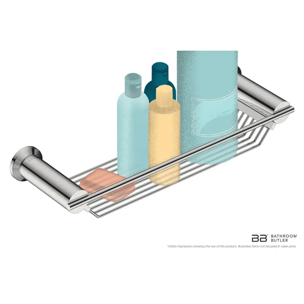 Installing a shower rack in your shower or bath area is perfect for maximizing storage space in that area and at the same time keeping it clean and tidy. A shower rack can also be installed next to a bath for maximum usage. Using grade 304 stainless steel to manufacture our accessories, we ensure that your shower rack is 100% recyclable after its useful life.