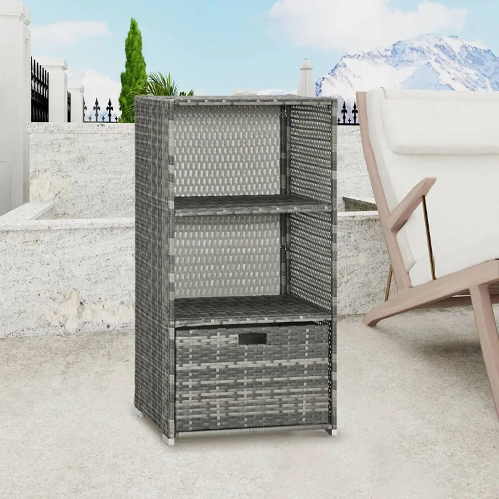 Wellfor Outdoor Pe Wicker Pool Towel Rack Waterproof Storage Organizer With 2 Shelves Gray