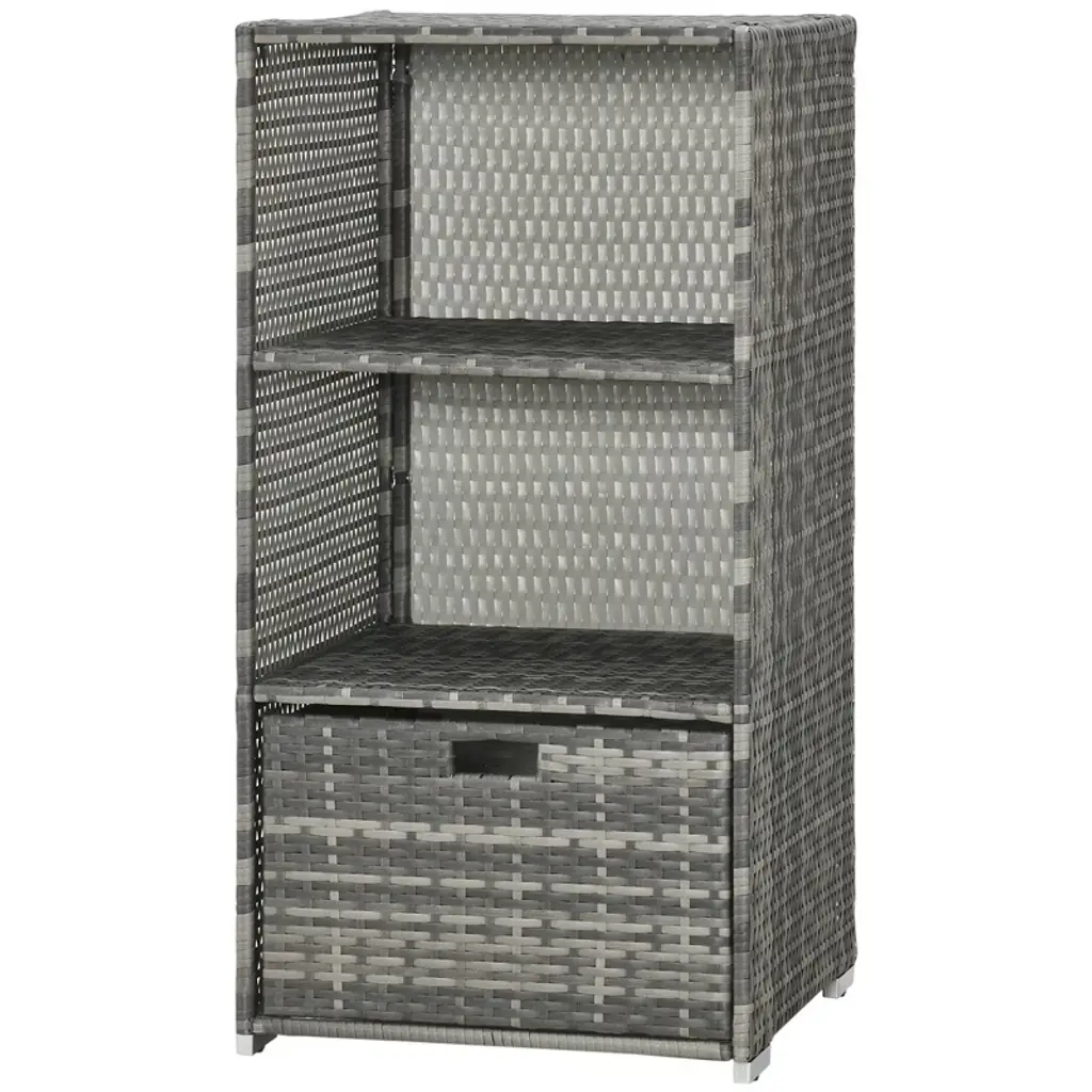 Keep your poolside neat and stylish with this Waterproof PE Plastic Rattan Wicker Storage Organizer, designed for both indoor and outdoor use. Featuring a pull-out accessory drawer, two-tier towel rack, and weather-resistant PE wicker, it offers a versatile storage solution for pool essentials, towels, and spa accessories. With its durable construction and elegant woven design, this organizer brings a touch of luxury to your pool, hot tub, or bathroom.