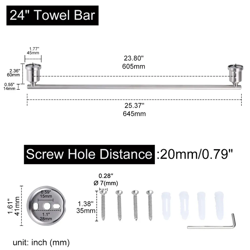 Wowow 24 In. Towel Bar Bathroom Wall Mounted Stainless Steel Bathroom Towel Rack And Towel Holder In Brushed Nickel