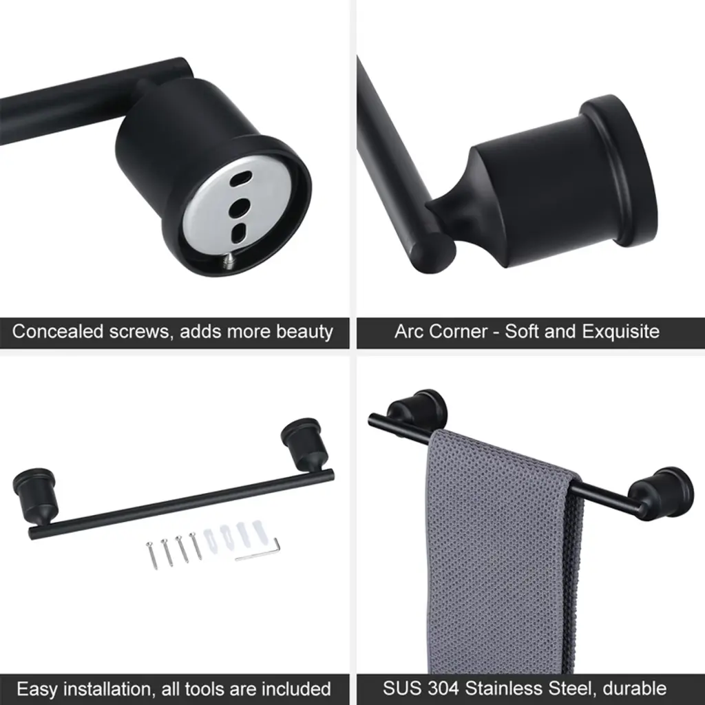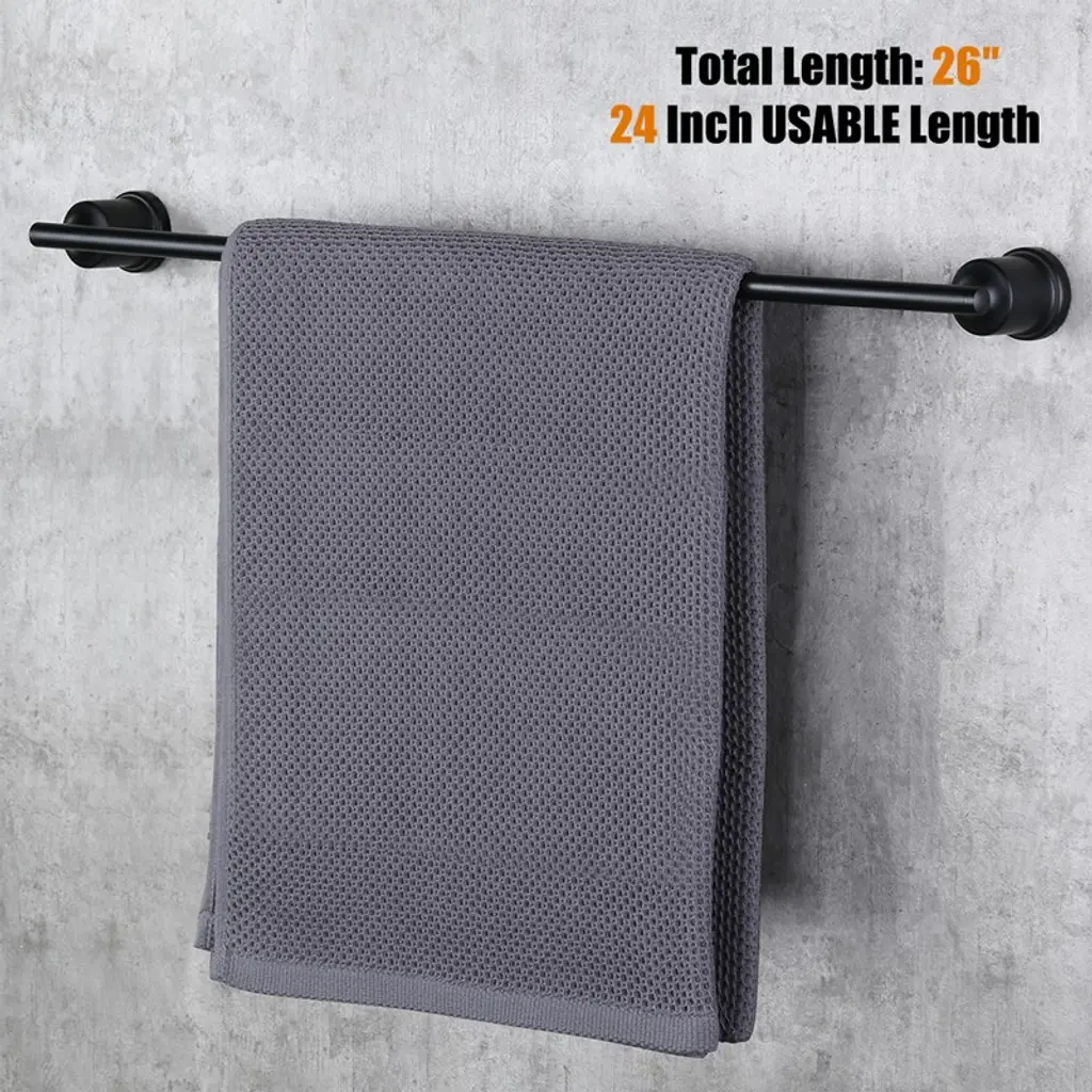 Wowow 24 In. Towel Bar Bathroom Wall Mounted Stainless Steel Bathroom Towel Rack And Towel Holder In Matte Black