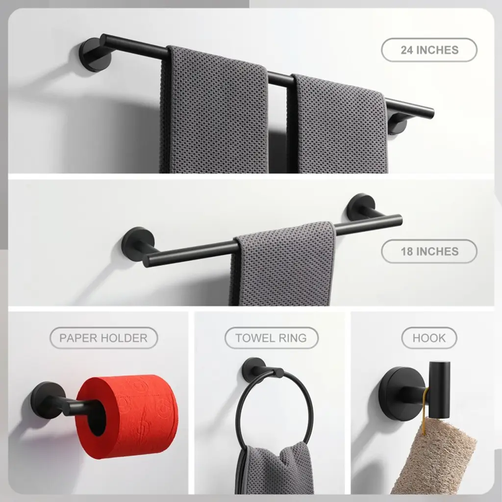 Wowow 6-piece Stainless Steel Bathroom Towel Rack Set In Matte Black