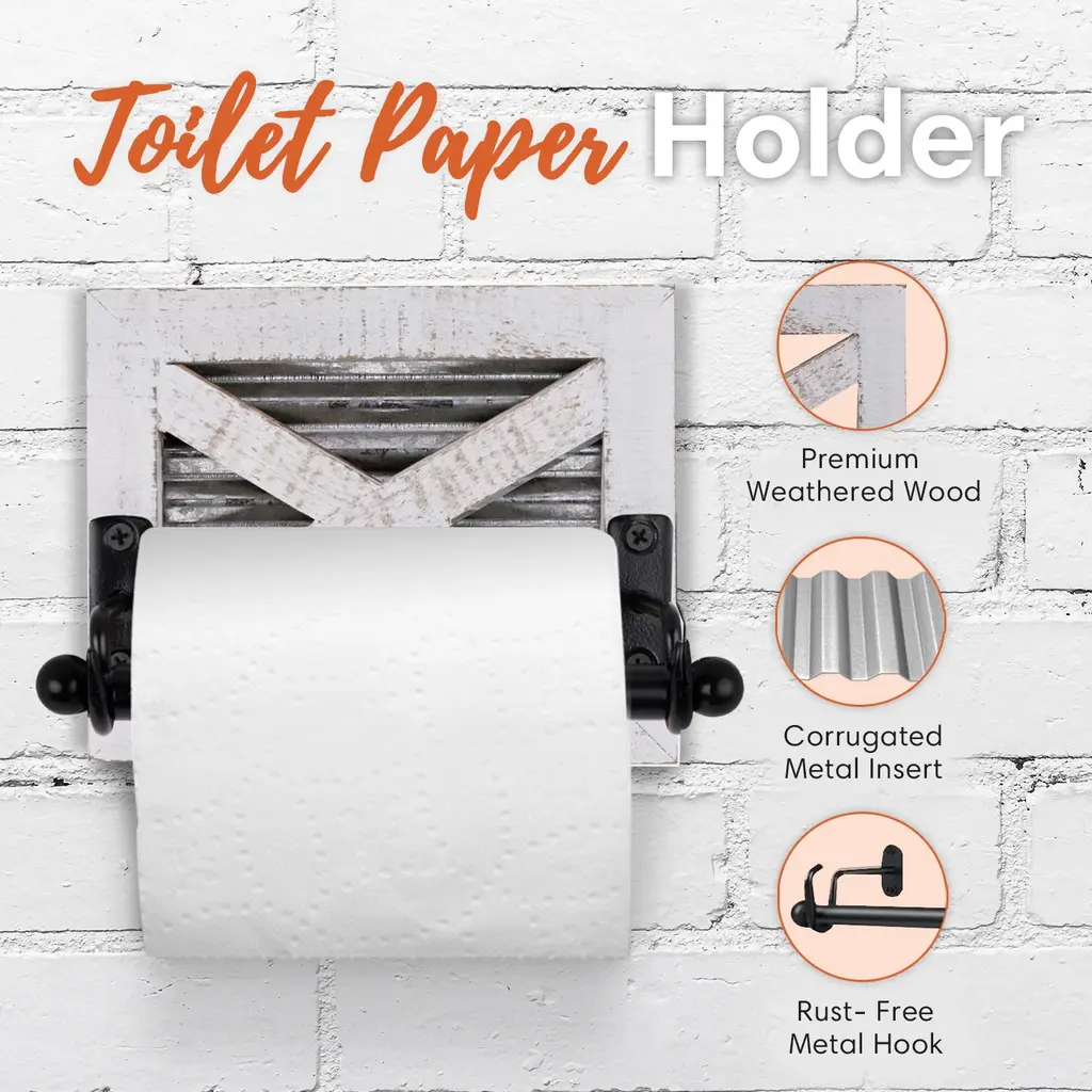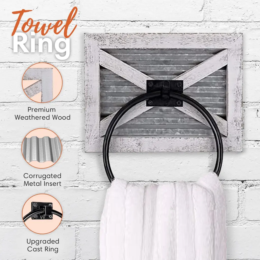 Autumn Alley Farmhouse Toilet Paper Holder, Towel Ring, Towel Rack Set, 3Pcs, Wall Mount, Rustic Woode, Brown Or White - White
