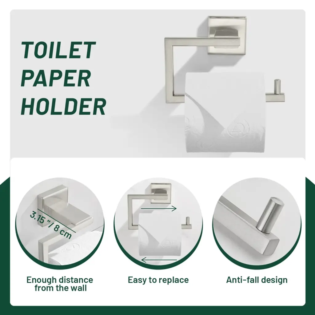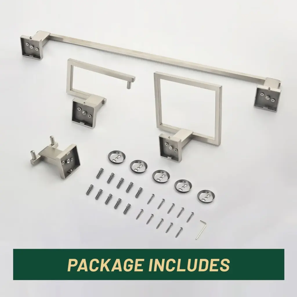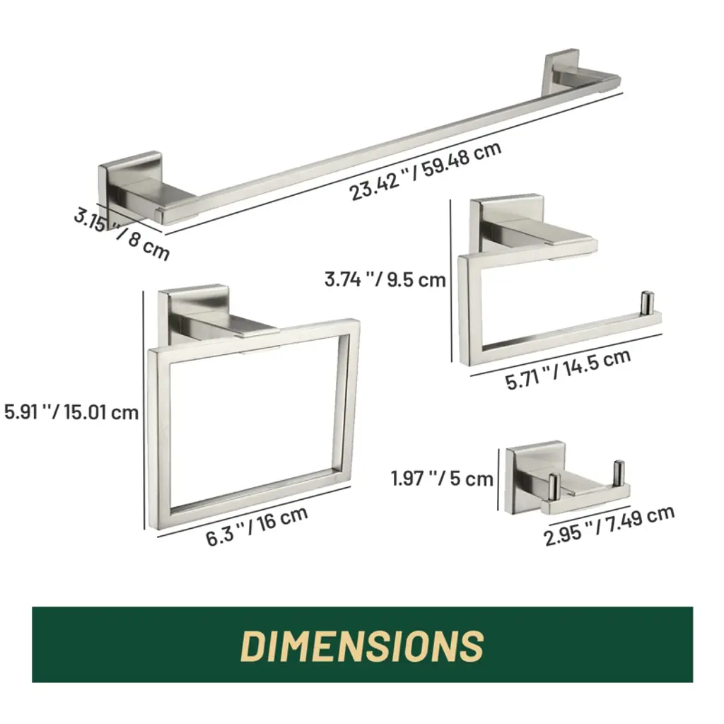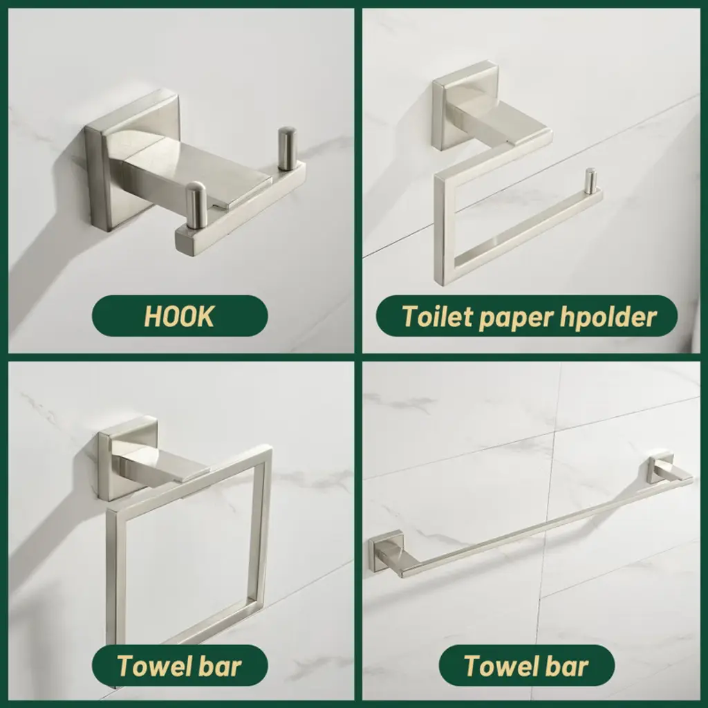 Cobbe Brushed Nickel Bathroom Accessories 4-piece Bathroom Hardware Set, Includes Towel Rack, Towel Hook, Toilet Paper Holder And Towel Ring