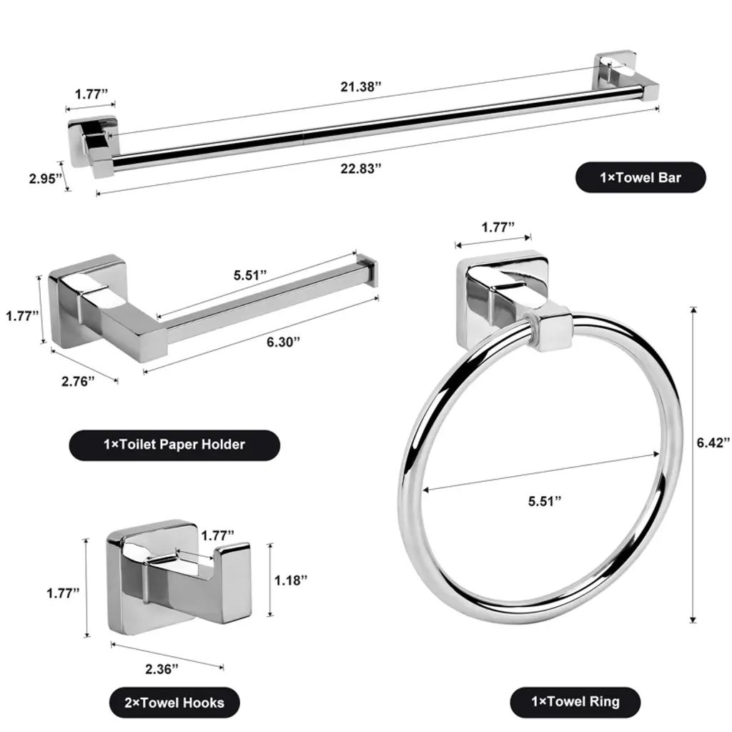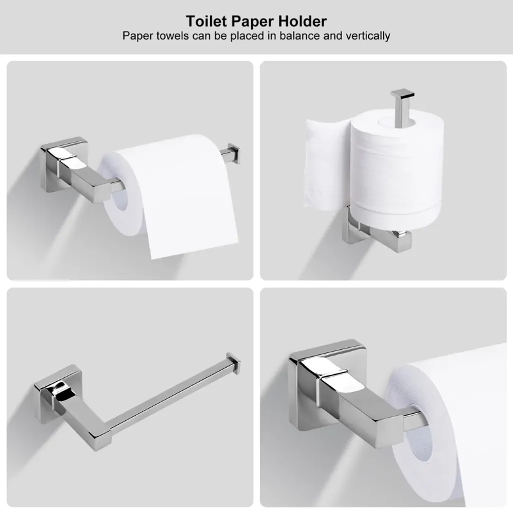 Elevate your bathroom or kitchen with this 5 - piece polished chrome bathroom hardware accessories set. Crafted from SUS 304 stainless steel, it's resistant to rust and corrosion, offering long - term durability. The set includes a towel bar, hand towel ring, toilet paper holder, and 2 towel hooks, providing a comprehensive solution for your daily storage needs. The silver finish not only adds beauty but also resists spots and scratches, saving you time and money on maintenance. Installation is easy as all necessary hardware is included in the package. Whether it's your bathroom or kitchen, this set is a practical and stylish addition that will enhance the functionality and aesthetics of your space.