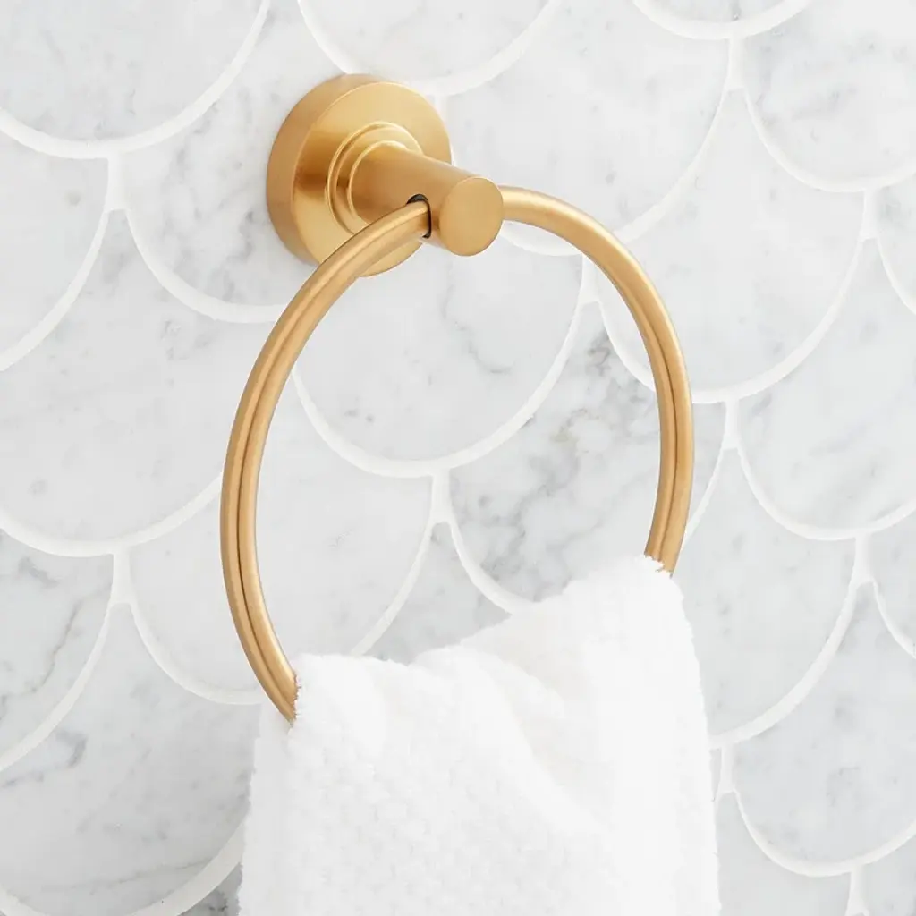 Add elegant functionality to your bathroom with the Lexia towel ring. Perfect for keeping hand towels within reach, this accent streamlines your space while offering a clean, modern detail. Built to last, this metal accent has a corrosion-resistant finish. Complete the whole set with additional accents from the Lexia collection. Mounting hardware is included.