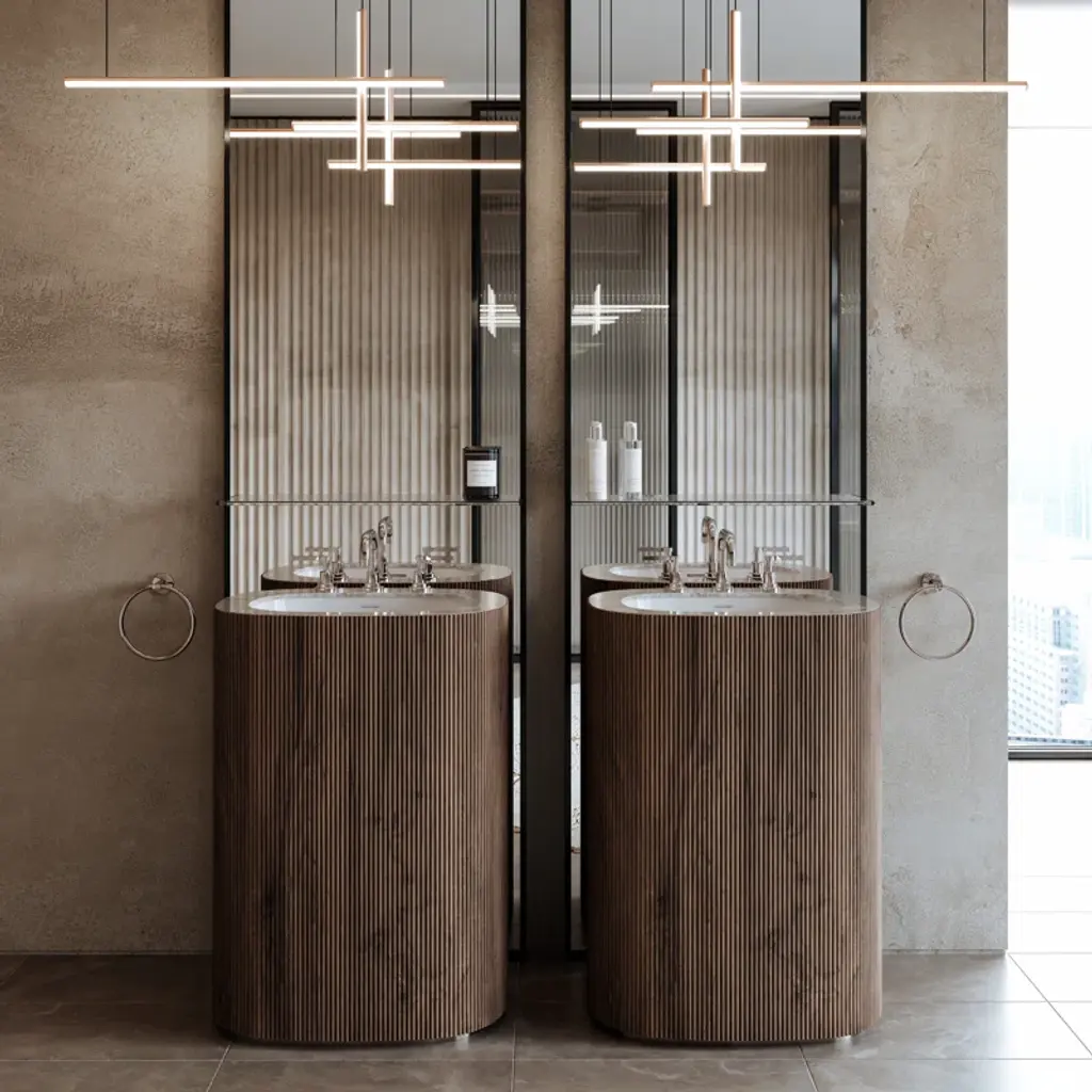 The Italian Alps of Lombardy loom large over the fashion capital of Milan. The Lombardia Bath Collection pays tribute to this region of natural beauty and celebrated style. The vertically-stacked base of handles and faucet is inspired by mountain peaks and heights; the angular curve of the neck and clean lines follow the stylistic signatures of Milan’s minimalist fashion designers. This merging of art and nature creates a seamless balance, meant for a bathroom with a modern or transitional point of view.