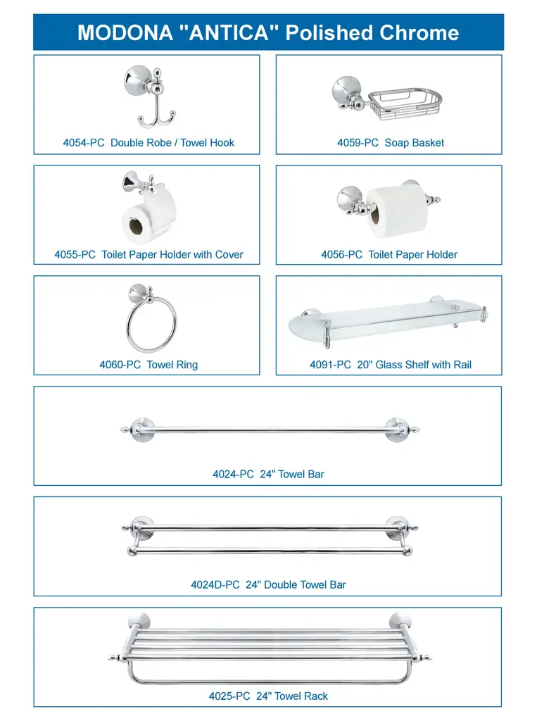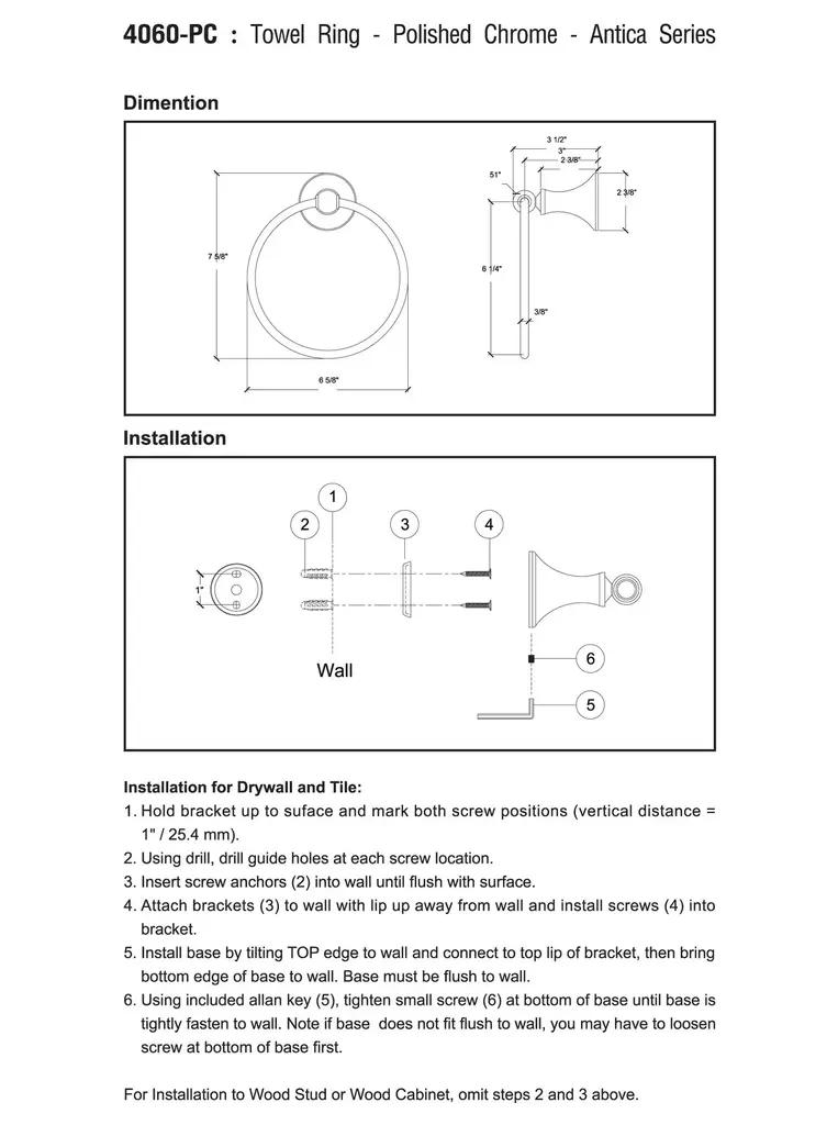 MODONA's Towel Ring will help you transform your bathroom into the bathroom of your dreams. Includes heavy-duty hardware, including stainless steel screws, high-quality wall anchors, and detailed installation instructions. Base and finish match all other units in this series, please search Antica Series to see all the other matching items, including: Double Robe Hook, Toilet Paper Holder, Towel Ring, 24 in. Towel Bar, 24 in. Double Towel Bar, 24 in. Towel Rack and 20 in. Frosted Glass Shelf. This series is available in POLISHED CHROME, SATIN NICKEL, and RUBBED BRONZE. All of MODONA products are covered by our COMPREHENSIVE 5-year WARRANTY.Towel Ring with Stainless Steel Ring.SIZE: 6½” x 6½” Ring.FUNCTION: Holds Hand Towels Perfectly.BEAUTIFUL: Antique, Classic Design. Available in POLISHED CHROME, SATIN NICKEL, and RUBBED BRONZE. Base and Finish Match all other Items in Antica Series.EASY: Heavy Duty Installation Hardware, including Stainless Steel Screws, High-Quality Wall Anchors, and Detailed Installation Instructions.TRUST: ALL Modona Products are covered by our COMPREHENSIVE 5 YEAR WARRANTY.