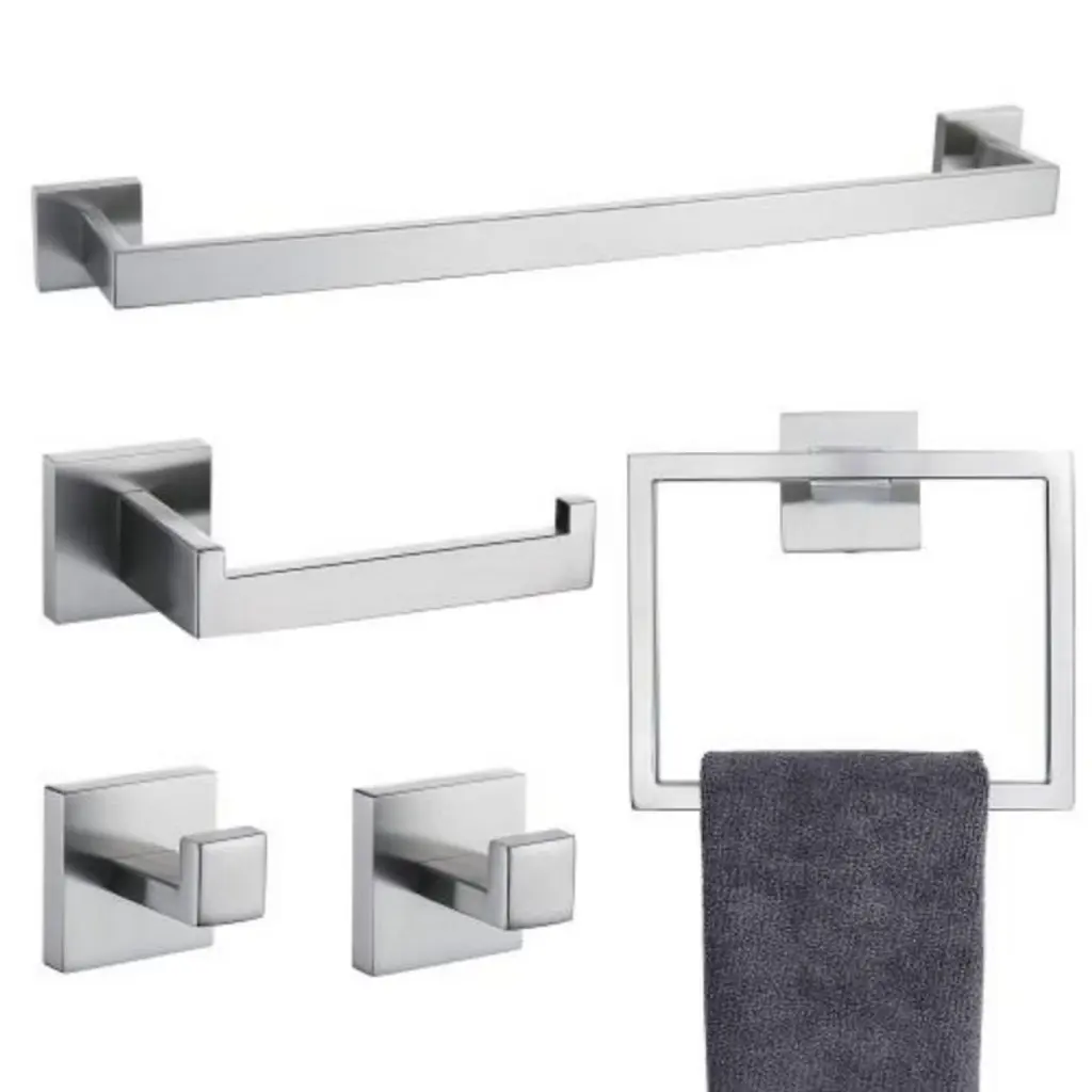 Our 5-piece bathroom hardware set is made of stainless steel with a brushed nickel surface, which is rust-proof and gives a sense of texture. The set is designed with simple lines and sturdy structure. The unique square shape and hidden mounting holes add a touch of modern design to your bathroom and the chamfered edges protect your body from scratches. It can provide easy access and display of towels, bathrobes and toilet paper in your bathroom.