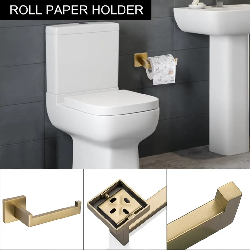 Rbied 5-piece Stainless Steel Bath Hardware Set With Toilet Paper Holder, Towel Holder, 2 Hooks, Towel Ring, Brushed Gold