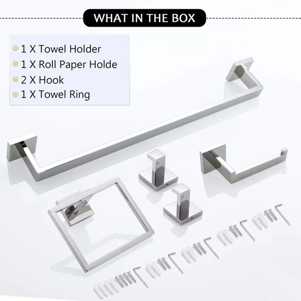 Rbied 5-piece Stainless Steel Bath Hardware Set With Toilet Paper Holder, Towel Holder, 2 Hooks, Towel Ring, Chrome
