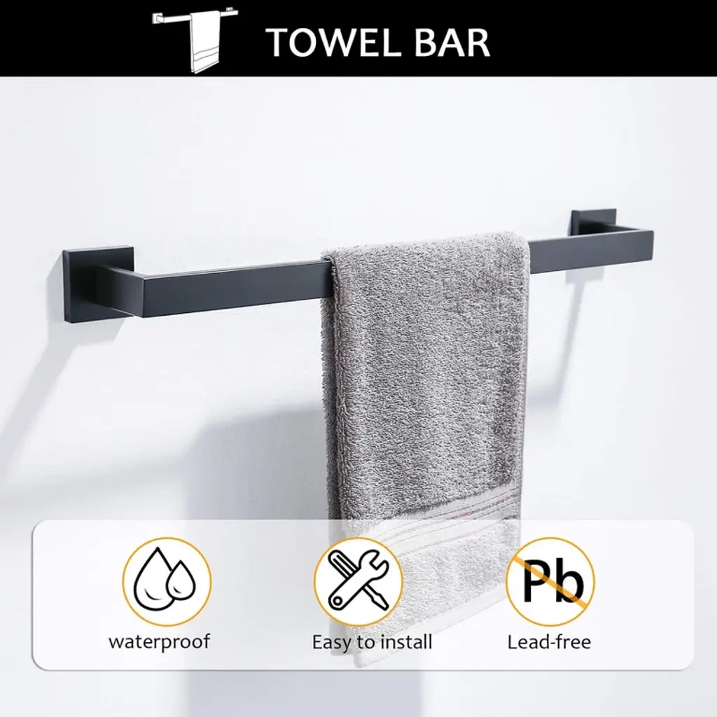 Our 5-piece bathroom hardware set is made of stainless steel with a brushed nickel surface, which is rust-proof and gives a sense of texture. The set is designed with simple lines and sturdy structure. The unique square shape and hidden mounting holes add a touch of modern design to your bathroom and the chamfered edges protect your body from scratches. It can provide easy access and display of towels, bathrobes and toilet paper in your bathroom.