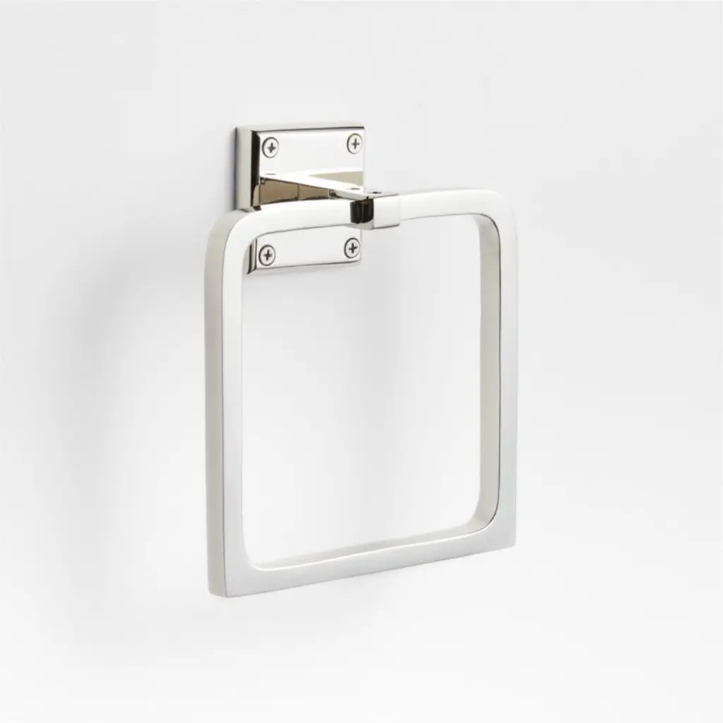 Sometimes it's the small things that pull a room together. That's why we've designed a hardware collection with modern silhouettes, clean lines and a touch of tradition to give your bathroom that perfect finishing touch. Rounded corners and smoothed edges soften the minimalist design of the hand towel ring made of brass finished in polished chrome. The towel holder threads an open, stirrup-shaped square through a rectangular rod affixed to a square wall plate for a look that's bold and geo-focused. Included hardware makes it easy to mount the towel ring on the wall for an instant bath refresh.