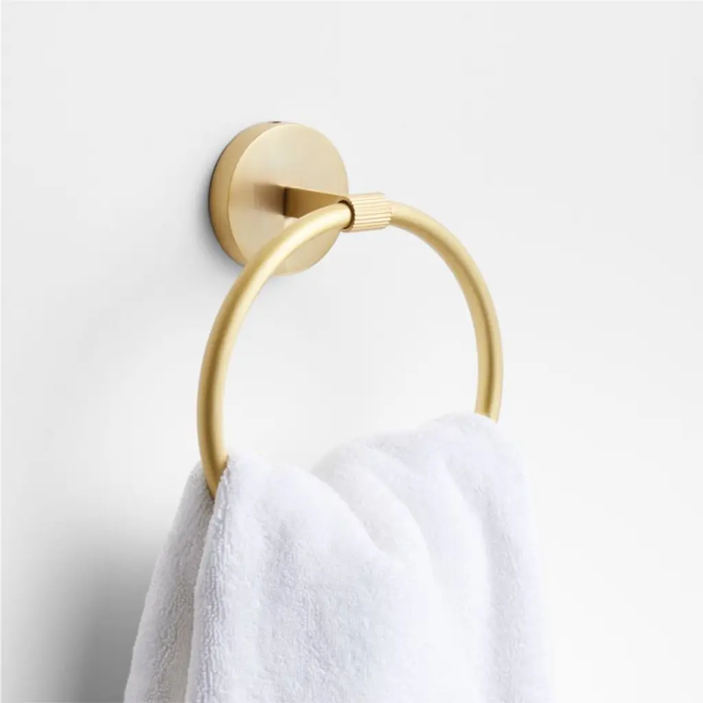 Sometimes it's the small things that pull a room together. That's why we've designed a hardware collection with modern silhouettes, clean lines and a touch of tradition to give your bathroom that perfect finishing touch. Made of brass with a shiny chrome finish, the stylish hand towel ring threads a perfect circle through a tapered cylindrical rod grounded by a scaled-up round rosette base. The result is a functional towel rack with a graphic look and modern proportions for an instant bathroom refresh. The towel ring is ready to mount on the wall with included hardware.