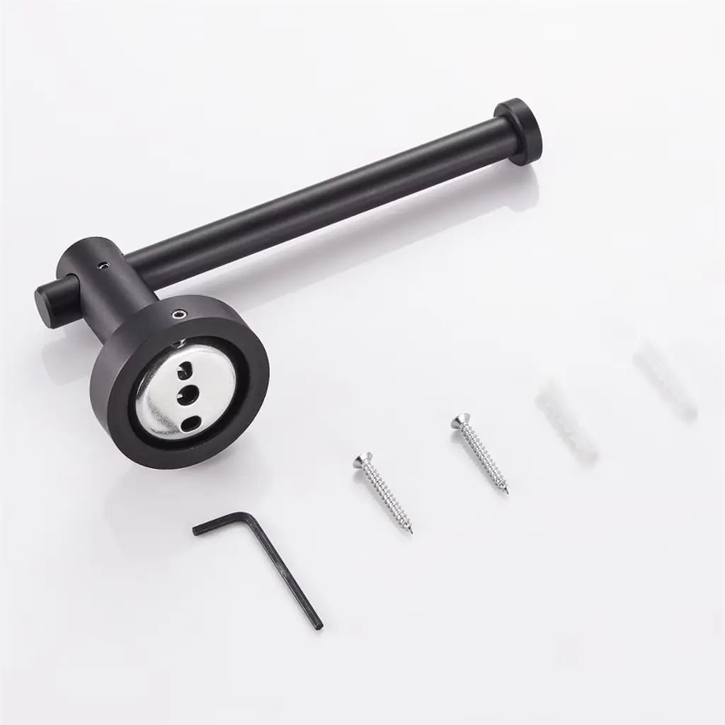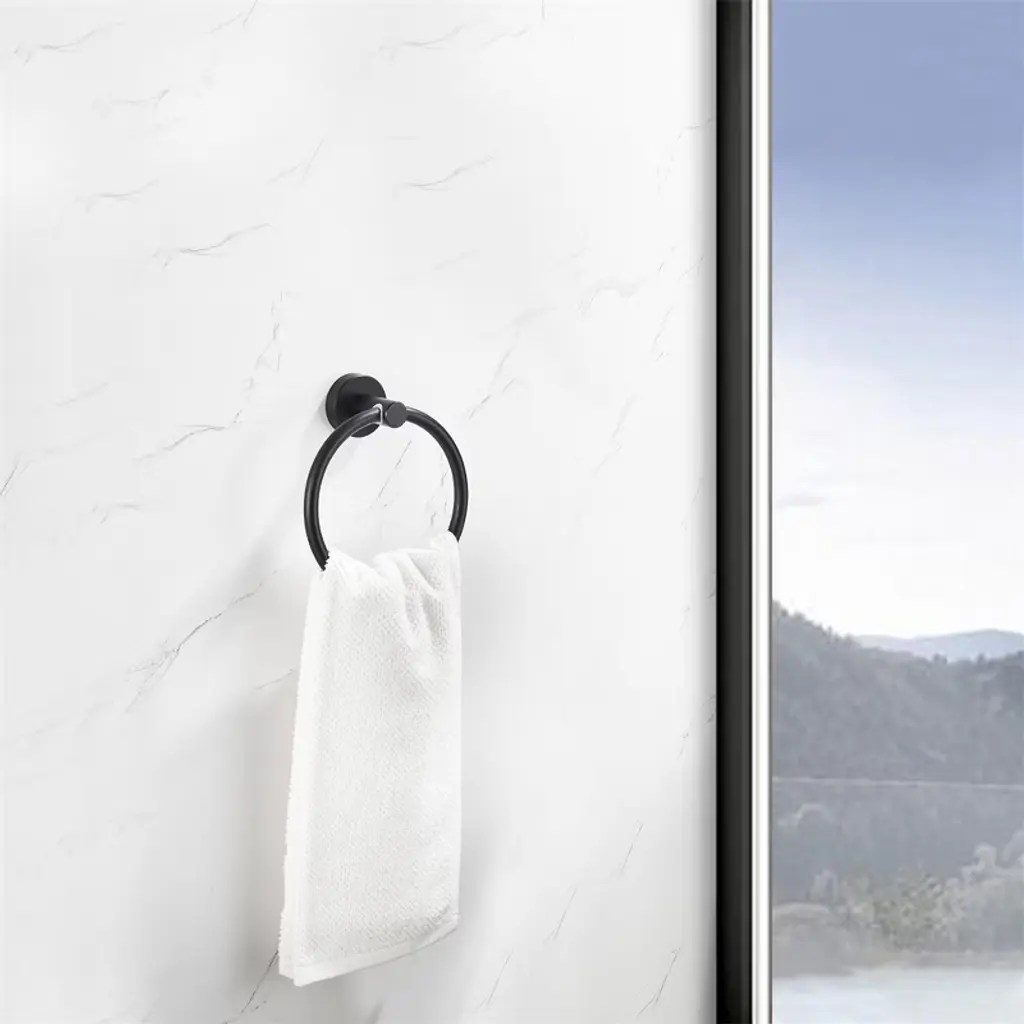 Tramull Black 3-piece Matte Bathroom Hardware Set, Adjustable Towel Bar, Toilet Paper Holder & Towel Ring