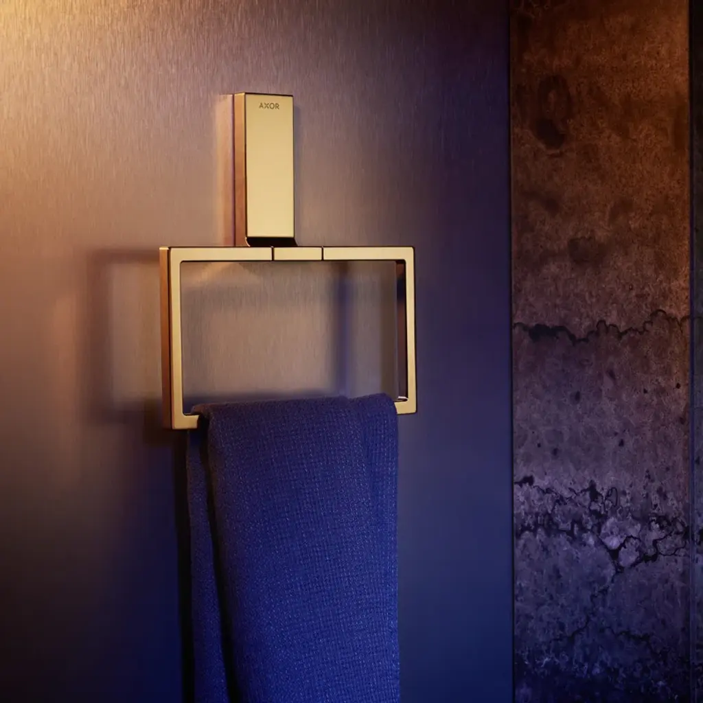 The AXOR Universal Rectangular Accessories range reflects the brand's passion for highly functional and expertly crafted design objects for the bathroom. Combinable with a wide variety of AXOR fittings and shower products, the range provides the basis for a uniform design language across the entire bathroom. The accessories include a wall mirror, a shaving mirror, towel hooks, one and two-armed towel rails, a towel rack, a tissue box, paper roll holder, toilet brush holder, a waste bin and a shower shelf. All accessories are available in Chrome, Brushed Gold Optic, Brushed Black Chrome, Matte Black, Matte White, and Brushed Nickel.