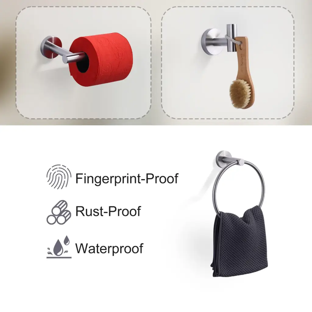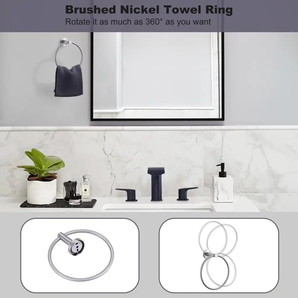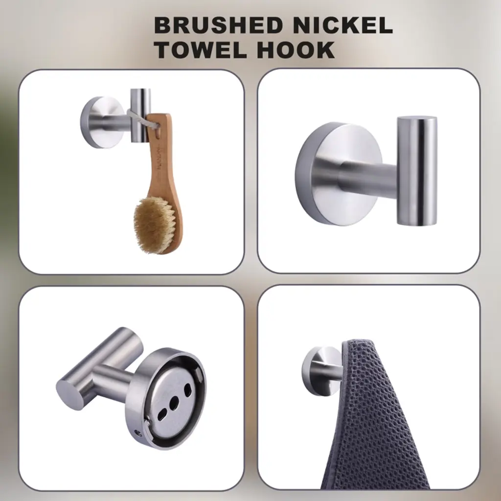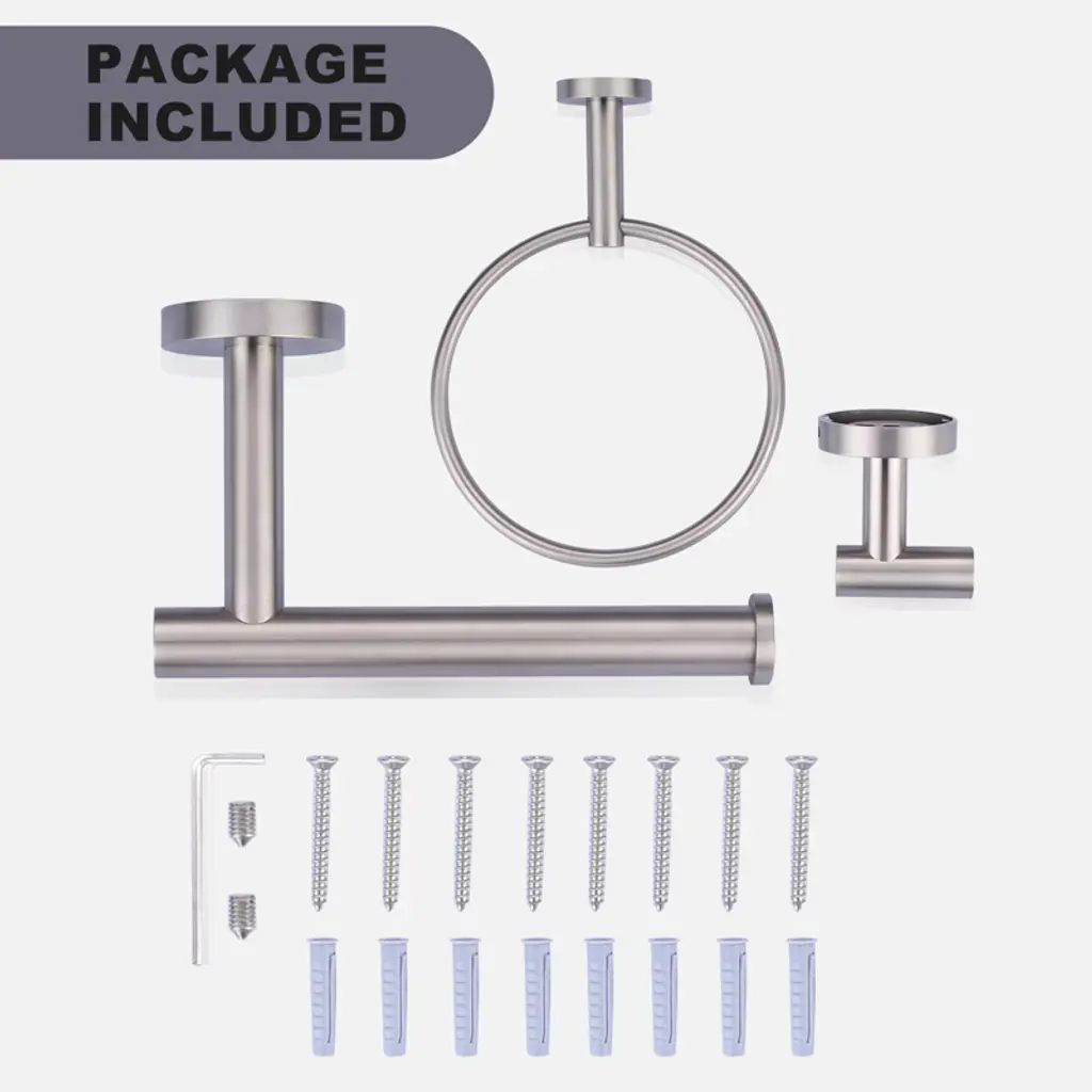 Wowow 3 -Piece Bath Hardware Set With Mounting Hardware With Towel Ring, Toilet Paper Holder, And Towel Hook In Brushed Nickel