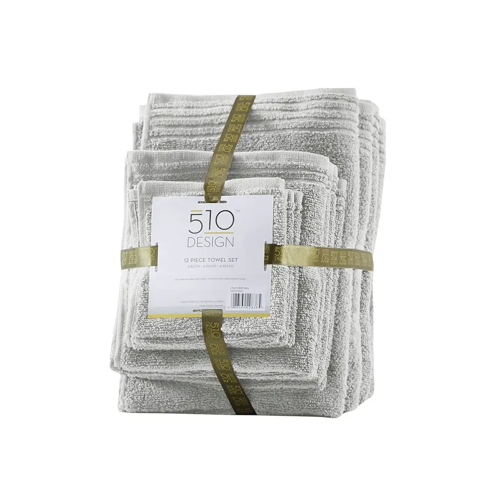 100% Cotton Quick Dry 12 Piece Bath Towel Set,100% Cotton For A Super Soft And Natural Feel,antibacterial Process - Silver