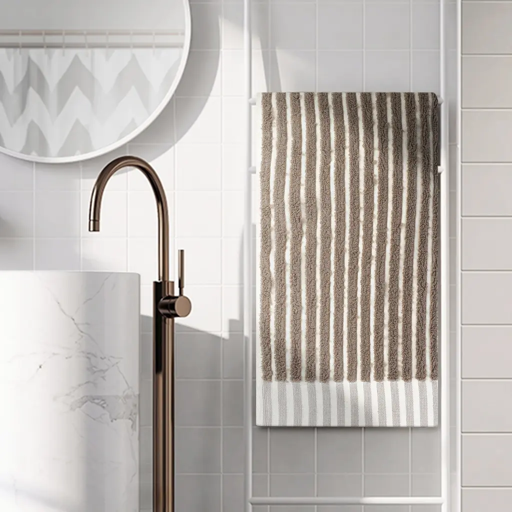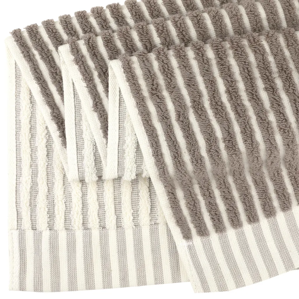 100% Cotton Striped Hand Towels, Soft Absorbent Quick Drying Towel Sets For Home, Hotel, Gym - Beige - 2 Pack