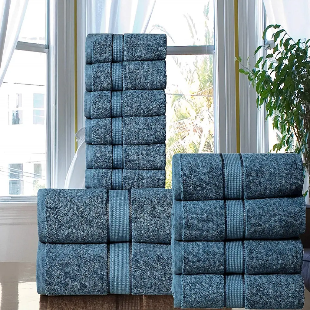 12 Piece Towel Set 600 Gsm Long-Staple Combed Cotton Absorbent Bath Towels - Royal Blue