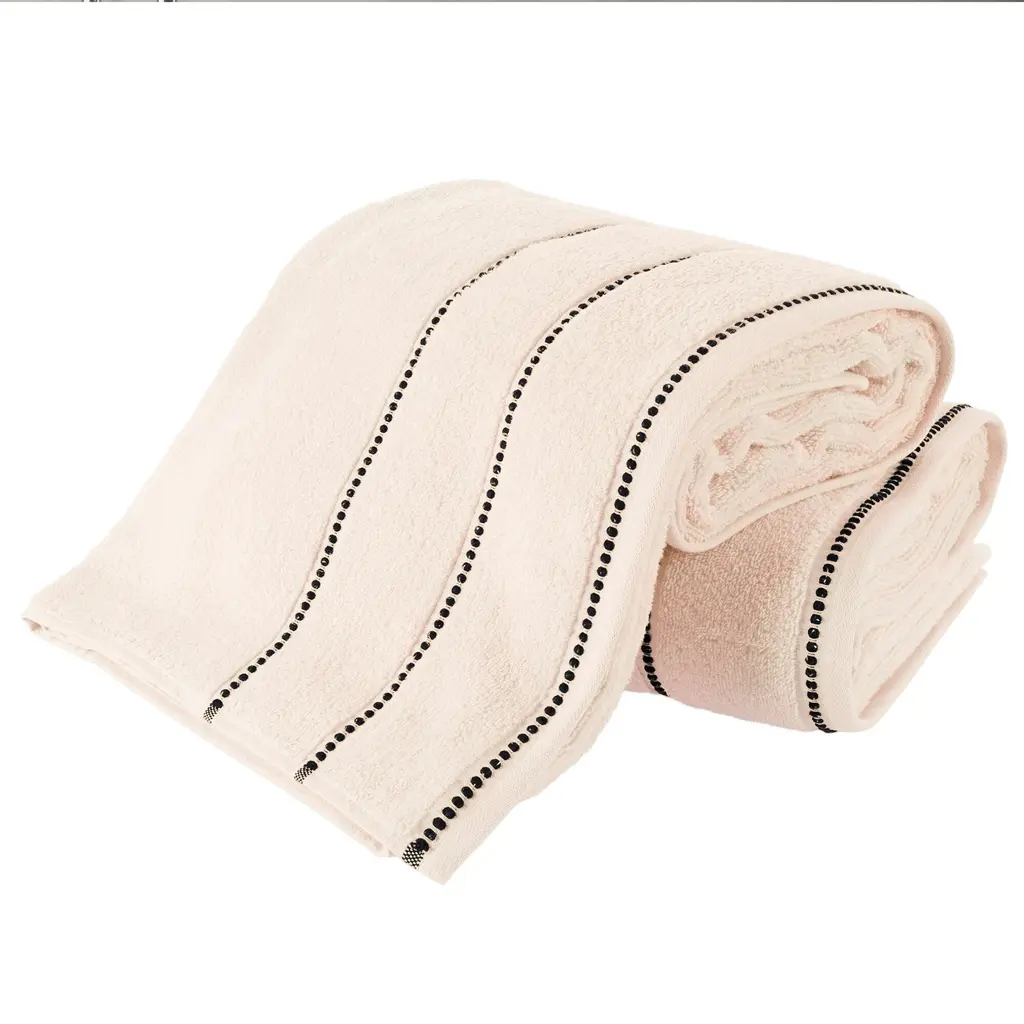Enjoy luxurious softness and maximum absorbency with this Two-Piece Luxury Cotton Bath Towel Set by Windsor Home. Featuring a unique fine yarn zero-twist design that boosts drying speeds 20 to 25% compared to conventional bath towels, these large bath towels offer a lightweight yet comfortable feel against your body and absorb lots of water for fast, efficient use. The basic black color with high-contrast white beading at the edges imbues these bathroom towels with modern sophistication and enables easy matching with most contemporary color schemes. SET OF 2 BATH TOWELS - Bring a modern feel to your bathroom with these luxury cotton bath sheets. These black towels boast white beading around the edges for a high-contrast look that lends drama and intrigue to contemporary home decor schemes.QUICK DRYING - Count on these bath sheets for a lightweight design and quick-drying convenience. Construction from luxury cotton yarn with zero-twist loops ensures these black towels with white beading dry 20 to 25% faster than conventional bath towels.SOFT FEEL - Enjoy a soft, cozy feel when you wrap these towels for the bathroom around you. Premium cotton materials make these bath towels plush to the touch and equally ideal for use after showering or hopping out of the swimming pool.EASY CARE - Launder these bathroom towels at home for convenient cleaning, whether you used them at home, the gym, or the beach. Simply machine wash these bath towels with like color and without any bleach, then tumble dry for fast, easy care.PRODUCT DETAILS - Materials: 100% 425GSM Fine Yarn Cotton with Zero-Twist Loops. Dimensions: (L) 34" x (W) 68". Wash Before First Use, Then Machine Wash with Like Colors. Do Not Bleach. Tumble Dry.