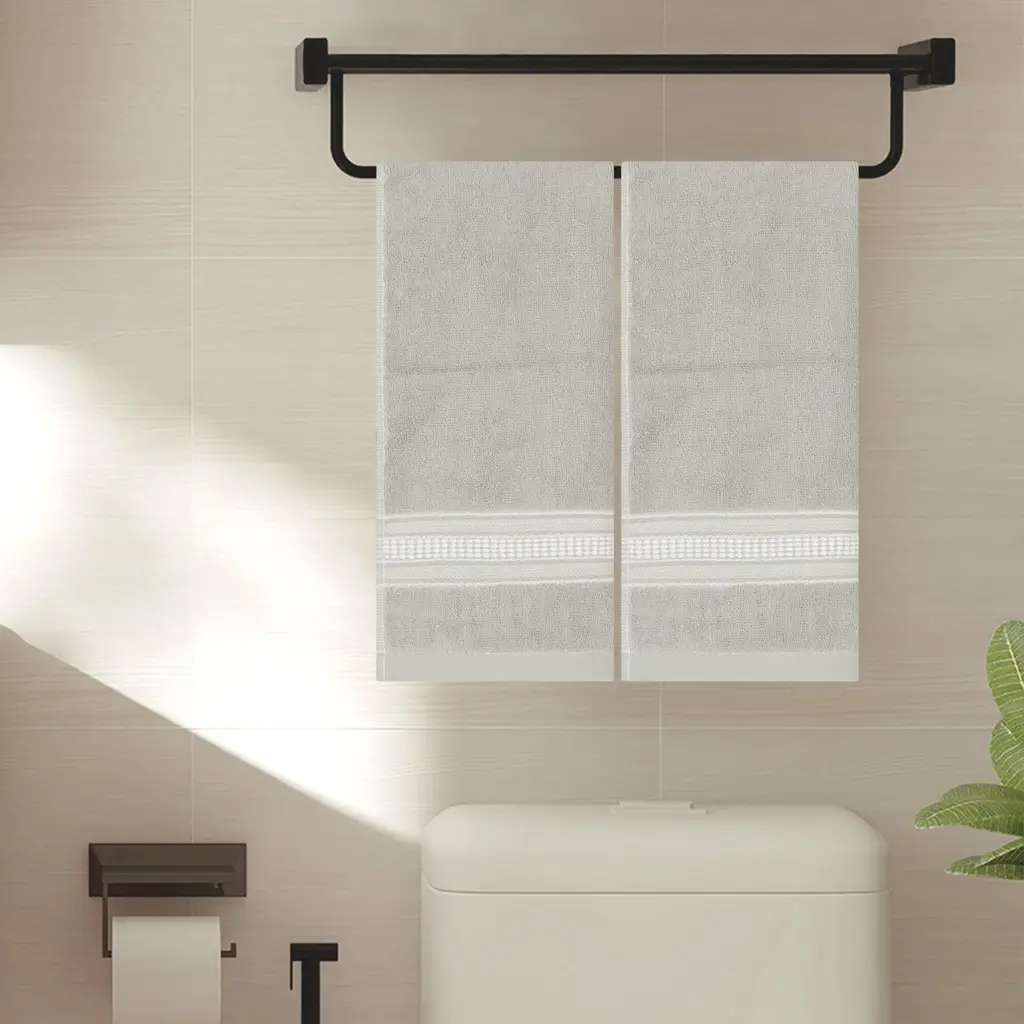 2Pc Jude Fringe Hand Towel Set Dark Taupe - Skl Home: Cotton Terry, Stripe Pattern, Bathroom Essentials