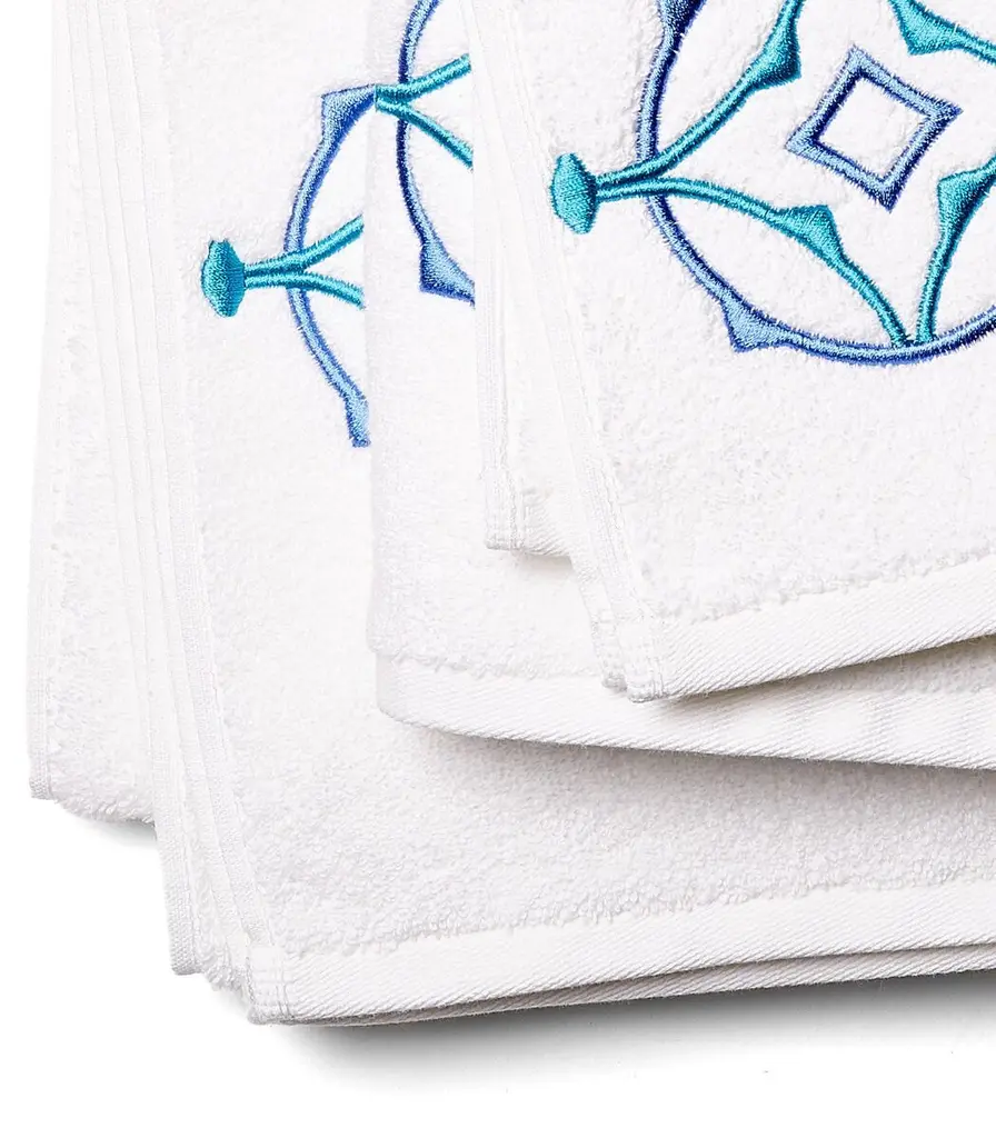Pamper yourself with this set of spa-worthy, 700-grams-per-square-meter weight towels. Finished with an embroidered two-tone openwork motif, these super-soft combed cotton towels are as elegant as they are thirsty.