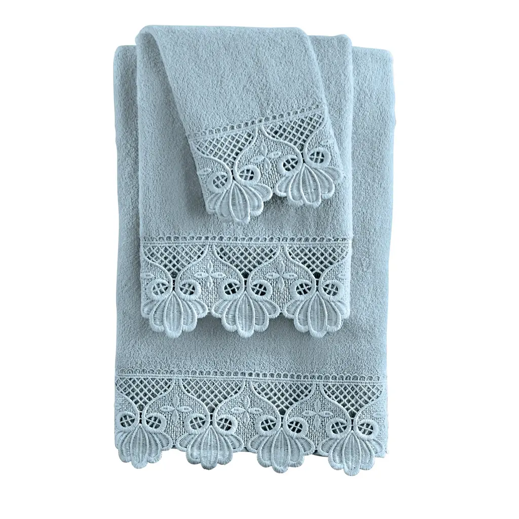 3-Piece Macramé Laced Bathroom Towel Set - Sage - 44 X 0.5 X 22