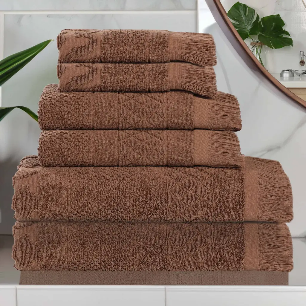 6-Piece Cotton Deluxe Plush Bath Towel Set – Chevron Patterned By Windsor Home - Brick