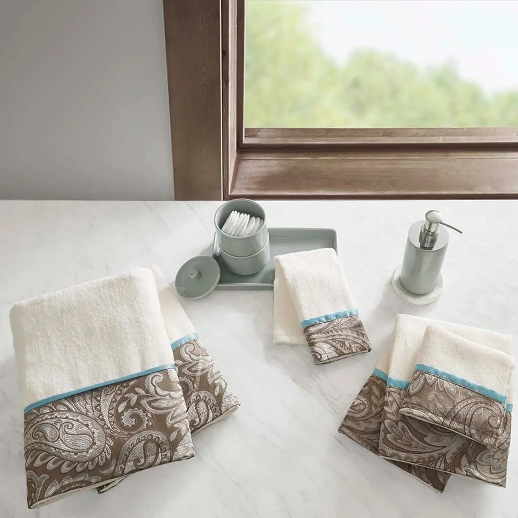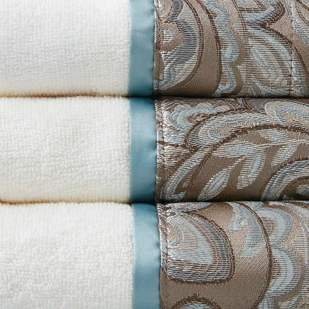 【Product Features】 ★100% cotton terry 6PC towel set ★Oeko-Tex Certified, includes no harmful substances or chemicals ★Soft and highly absorbent ★Pieced paisley jacquard end hem for fashion touch ★Machine washable for easy care ★Set includes: 2 bath (27x52), 2 hand (16x28), and 2 fingertip (12x18) towels 【Description】 Add a sophisticated style to your bathroom with our Madison Park Aubrey 6 Piece Jacquard Towel Set. This towel set features a pieced design with a woven paisley jacquard hem, in soft blue and taupe hues, for an elegant and decorative touch. These cotton towels are also OEKO-TEX certified, meaning they do not contain any harmful substances, ensuring quality comfort and wellness. Made from 100% cotton terry, this towel set is incredibly soft, absorbent, and machine washable for easy care. Place these jacquard cotton towels in your bathroom to add the perfect finishing touches to your traditional style decor. Coordinating shower curtains and rugs are available and sold separately for a complete look. Set includes: 2 standard 27x52" bath towels, 2 standard 16x28" hand towels, and 2 standard 12x18" fingertip towels. 【Product Details】 See below 2 Bath Towels:27"W x 52"L (2) 2 Hand Towels:16"W x 28"L (2) 2 Fingertip Towels:12"W x 18"L (2) 【Material】 550gsm cotton, terry 【Keep it looking its best】 1.Fabric furniture Care;Dust regularly. Clean gently with a clean, slightly damp cloth. Professional cleaning is recommended. 2.Wood Furniture Care:We recommend dusting frequently with a clean, soft, dry, lint-free cloth. Clean the surface by rubbing in the direction of the grain and wipe dry. 3.Avoid direct sunlight. 4.Avoid the use of all chemicals, household cleaners, abrasives, or cleaners that contain lemon, vinegar, or other acids that may damage the finish. 5.Do not place hot appliances, such as curling irons and hot hair dryers directly on the countertop. 6.Spot clean using distilled water and water-based cleaning agents, foam or mild water-free cleaning solvents. 7.Always test a small inconspicuous area first. 8.Hardware may loosen over time; periodically check to make sure all connections are tight 【Notes】 1.Size Notice:Manual measurement has been used, there may be some reasonable errort, thanks for your understanding. 2.Color Notice:Due to factors such as display equipment and shooting environment, the color of the item may be slightly different from the picture, which is a normal phenomenon, please refer to the actual item 3.Assembly Notice:Please read assemble manual in advance. Please do not over-tighten nuts, as this may cause distortion or breakage. 4.It is recommended to put a layer of foam or soft cushion on the floor when installing to avoid scratching the floor. 5.If the item has any defects, damage or missing parts, please contact us with pictures or videos so that we can understand your needs and help you quickly, and always remember to retain its original packaging to ensure any return requests. We will try our best to solve any problems you may have. 6.If you receive the wrong product, please attach the product picture, the infographic of the outer package and the picture containing SKUs, so that we can verify and quickly deal with it for you