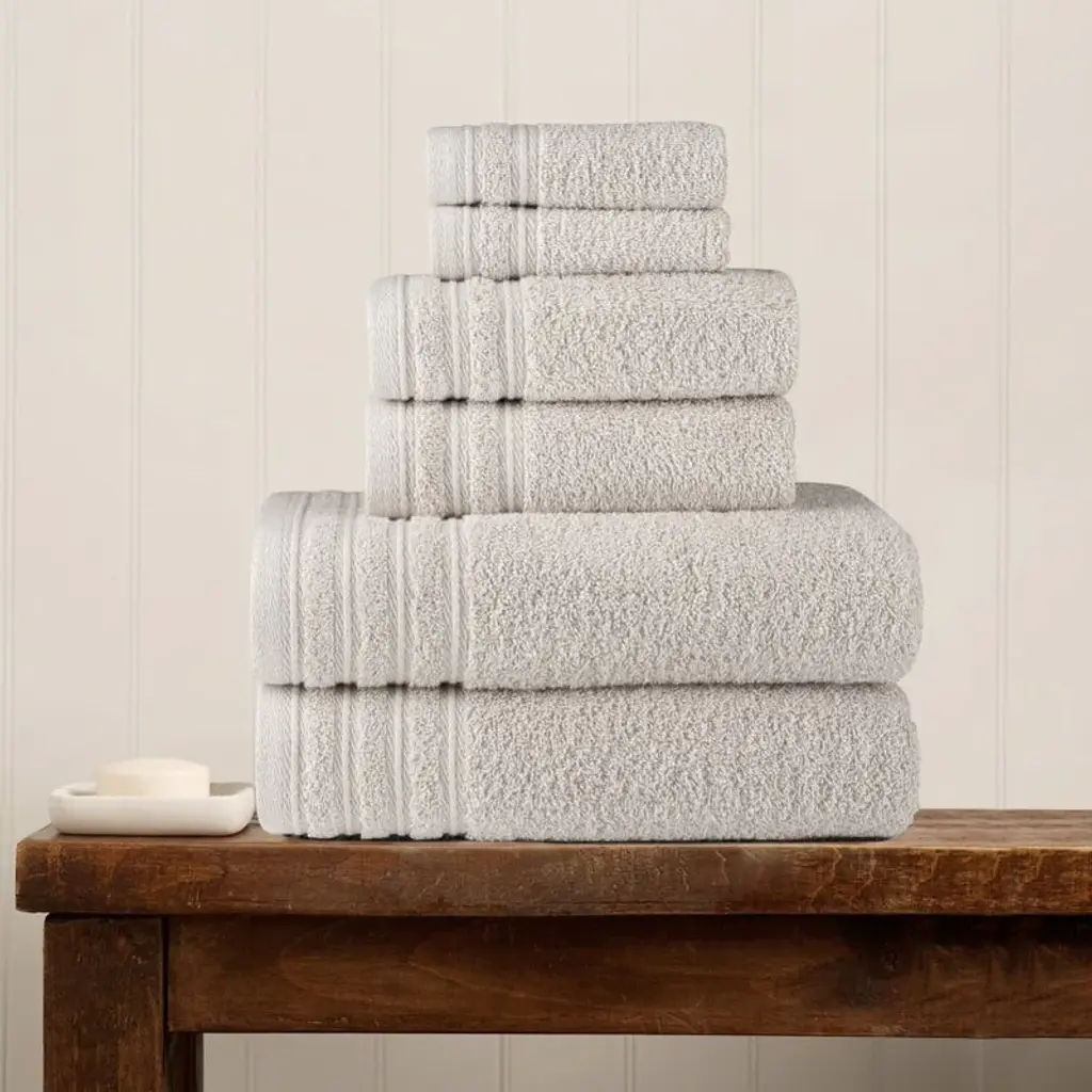Wrap yourself in luxury with our plush Shelly 6-Piece Bath Towel Collection. Made from the finest, highly-absorbent cotton, it's designed to provide ultimate comfort and dry you off quickly. Its generous size ensures maximum coverage, and the durable fabric withstands countless washes. Whether you're stepping out of the shower or lounging by the pool, our bath towel is your everyday essential for a soft, cozy, and refreshing experience. Elevate your post-bath routine with our premium towels at the epitome of comfort and style. These towels can complement any home decor. This towel set includes 2 Bath Towels, 2 Hand Towels and 2 Washcloths. Make your space look elegant with this cotton towel set of 6.