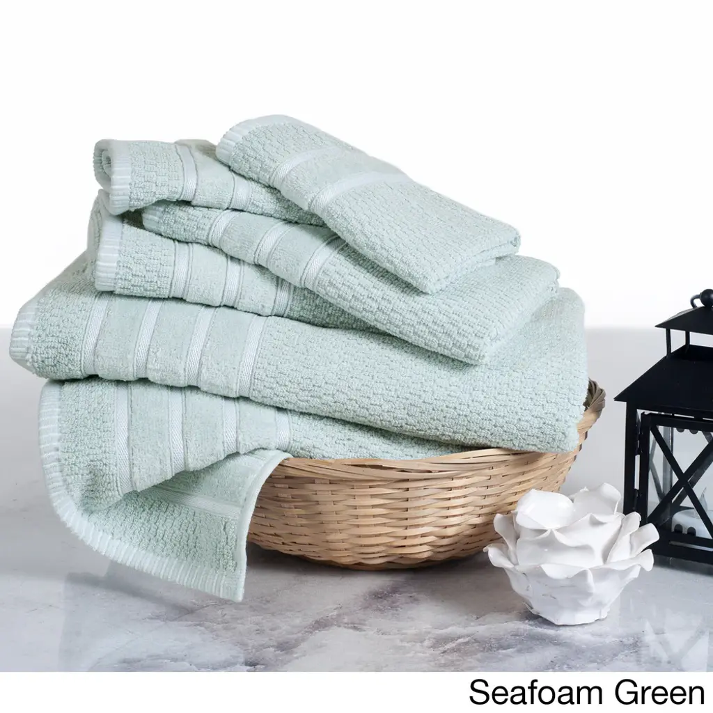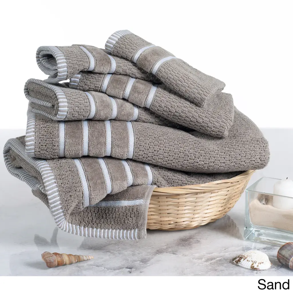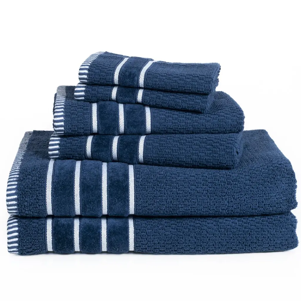 Enjoy a luxurious look and maximum absorbency with the 100-Percent Combed Cotton Bath Towel Set by Wndsor Home. Each bath towel is made from the highest quality cotton with loop construction offering more absorbency, while also remaining lightweight and comfortable. These towels are durable, long-lasting, and stylish with a subtle trendy pin stitch design that adds a touch of elegance to any bathroom décor.BATH TOWELS SET OF 6 - This bathroom towel set comes with 2 bath towels, 2 bathroom hand towels, and 2 washcloths made of high-quality yarn, resulting in excellent strength and absorbency for long-lasting use and a luxurious after-shower experience.ABSORBENT AND COMFORTABLE - The six lightweight towels in this towel set feature loop construction for absorbency and provide plenty of warmth, all while remaining breathable, for a comfortable and practical addition to your main or guest bathroom.EASY CARE - These easy-to-care-for towels for bathroom are machine washable and dryable for your convenience — simply wash the bathroom towels before the first use, machine wash warm with like colors, do not bleach, and put them on tumble dry.ATTRACTIVE BATHROOM DÉCOR - These bathroom essentials feature attractive stripes that complement any décor. They're a beautiful and elegant option for your primary or guest bath, to use at the beach, pool, or gym, and at spas and salons.PRODUCT DETAILS - Materials: 100% Combed Cotton. Dimensions: Towel: (L) 27.5" x (W) 53.5"; Hand Towel: (L) 16" x (W) 27"; Washcloth: (L) 13" x (W) 13". Includes 2 Bath Towels, 2 Hand Towels for Bathroom, and 2 Washcloths.