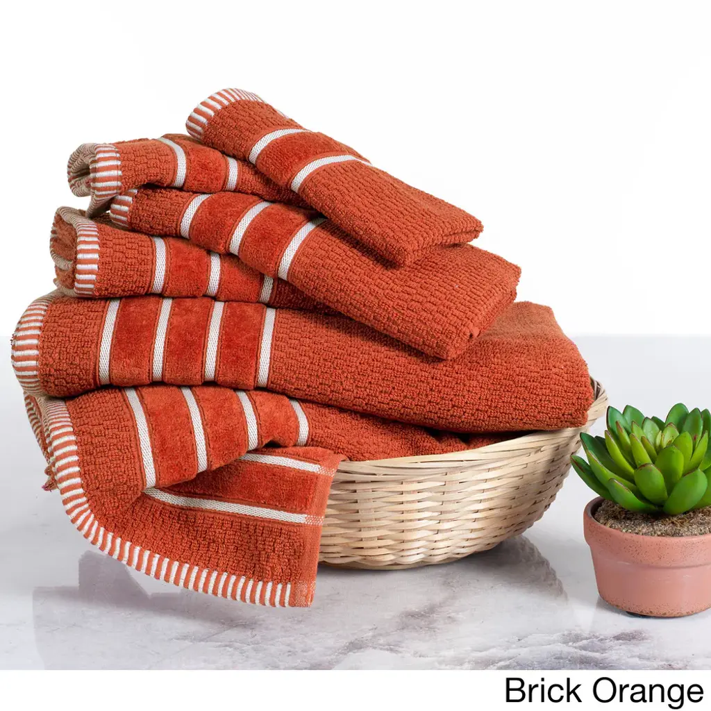6-Piece Towel Set - Combed Cotton Rice Weave Bathroom Accessories By Windsor Home - Brick