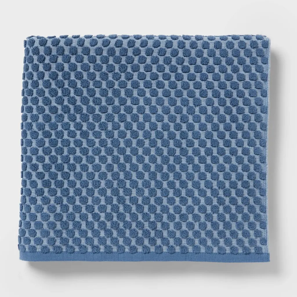Complete your bath essentials with this 6-Piece Performance Plus Textured Dot Bath Towel Set from Threshold™. Made from 100% cotton with a terry construction, this midweight towel set includes two bath towels, two hand towels and two washcloths that feel soft against your skin while helping you keep clean and comfortably dry. Each towel is fashioned in a solid hue and adorned with textured dot patterns, and features low-lint treatment and fade-resistant protective qualities, helping them to keep looking like new ever after multiple washes. Plus, they come with loops for convenient hanging.Threshold™: Looks like home, feels like you.