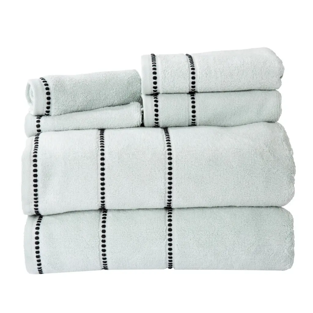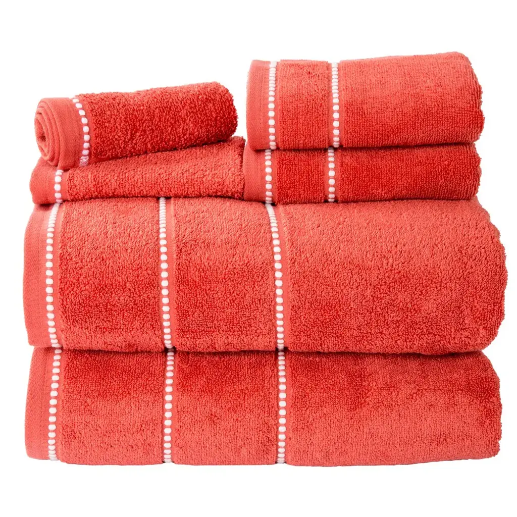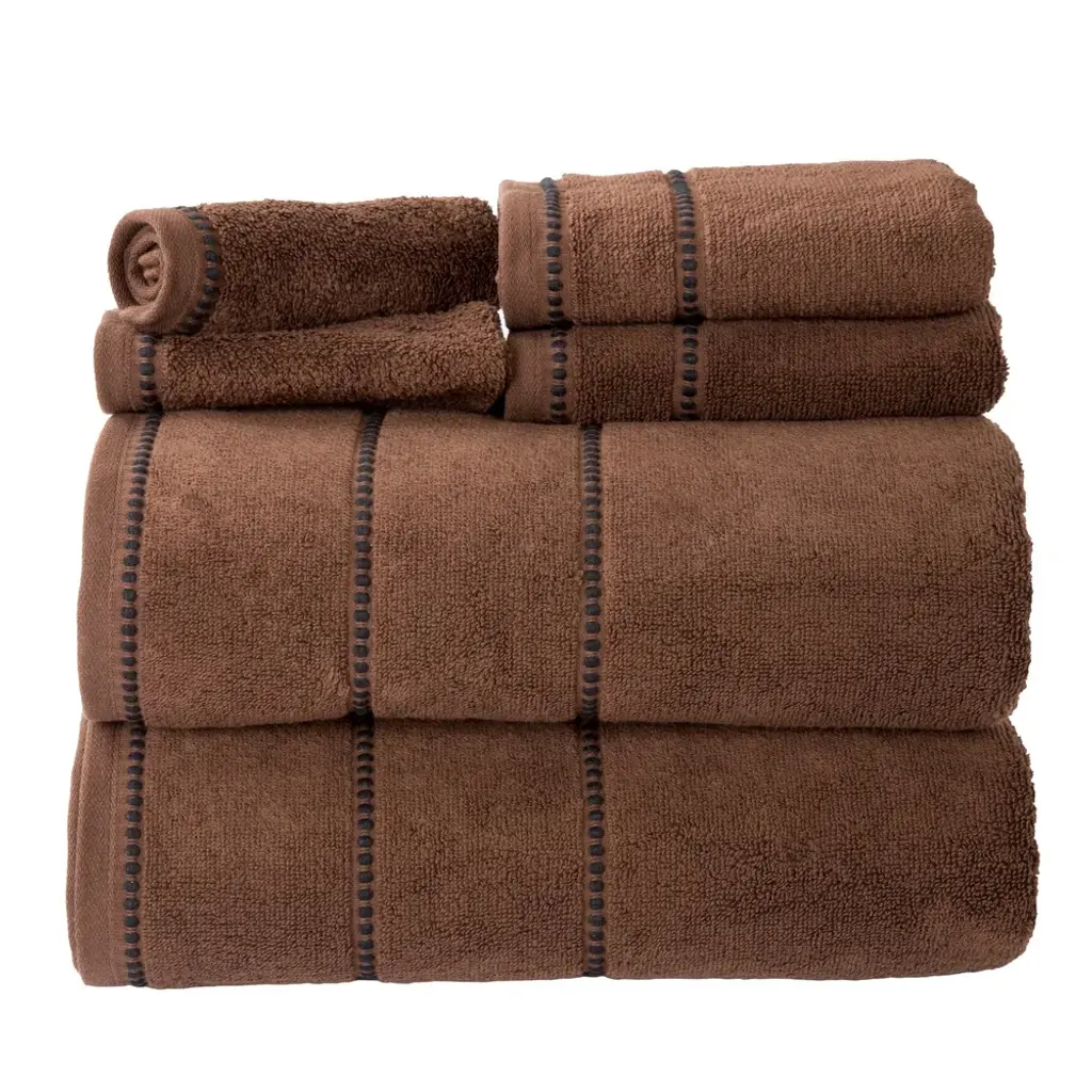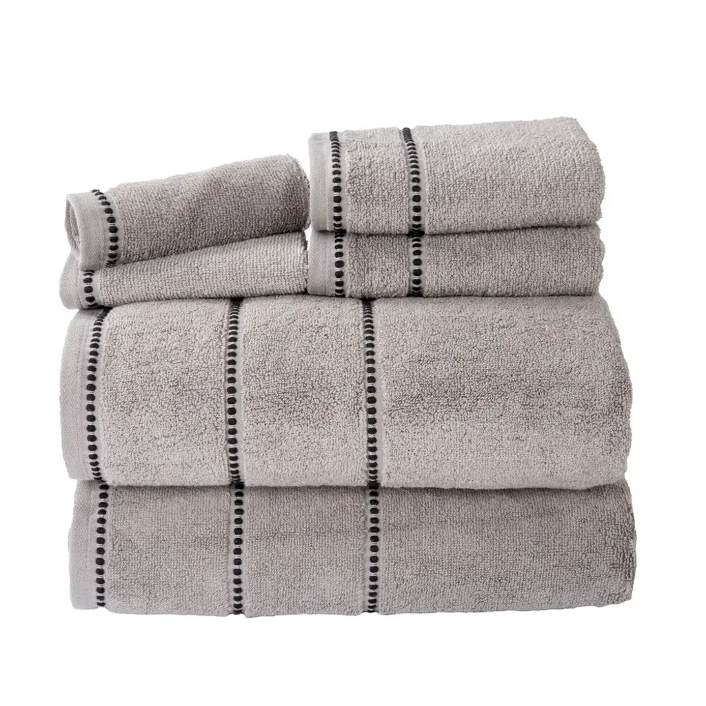 Bring spa quality luxury to the comfort of your own bathroom with the 6-Piece Bath Towel Sets by Lavish Home. These super soft and plush towels for bathroom are made from 100-percent cotton with a zero-twist designed for maximum absorption. This set includes 2 bath towels, 2 hand towels for bathroom, and 2 wash cloths, perfect for your primary, guest, or en suite bathrooms.BATH TOWELS SET OF 6 - This 6-piece bath towels set comes with 2 bath towels, 2 bathroom hand towels, and 2 washcloths with a pin stitch beaded border. These bathroom towels come in a variety of color options to complement any bathroom.ABSORBENT AND QUICK DRYING - Each towel in the bathroom towel set features zero-twist ends for increased absorbency while remaining lightweight. The cotton towels easily wick away moisture and are quick drying for use in your bathroom or washroom.QUALITY MATERIALS - The bath towel set is made of high quality 100% cotton, making it low maintenance and soft to the touch. Each bath towel is soft to the skin and provides plenty of warmth for a luxurious after-shower or bath experience.MACHINE WASHABLE - The large bath towels are machine washable and dryable for your convenience — simply wash the bathroom essentials before the first use, machine wash warm with like colors, do not bleach, and put them on tumble dry low.PRODUCT DETAILS - Materials: 100% Cotton. Dimensions: Bath Towel: (L) 54” x (W) 27”; Hand Towel: (L) 28” x (W) 16”; Washcloth: (L) 12” x (W) 12”. 6-Piece-Set.