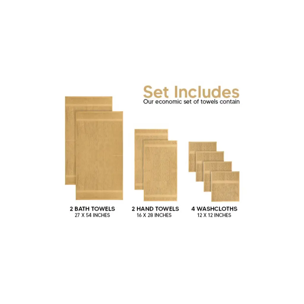 The towel sets for bathroom clearance are manufactured skillfully with 100% ring-spun cotton making the towels lightweight and highly absorbent. The premium quality of the bathroom towel set is meant to give a soft and delicate feel to your providing the care your skin deserves. The bath towels set includes a variety of towels: 2 bath towels, 2 hand towels, and 4 washcloths to ideally cater to all your drying, lounging, and cleaning needs sufficiently. The towels for bathroom absorb moisture significantly and dry promptly.