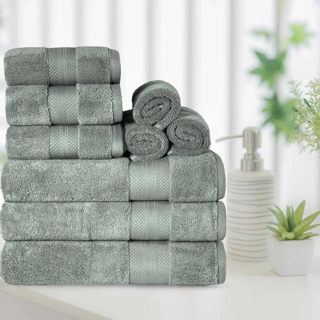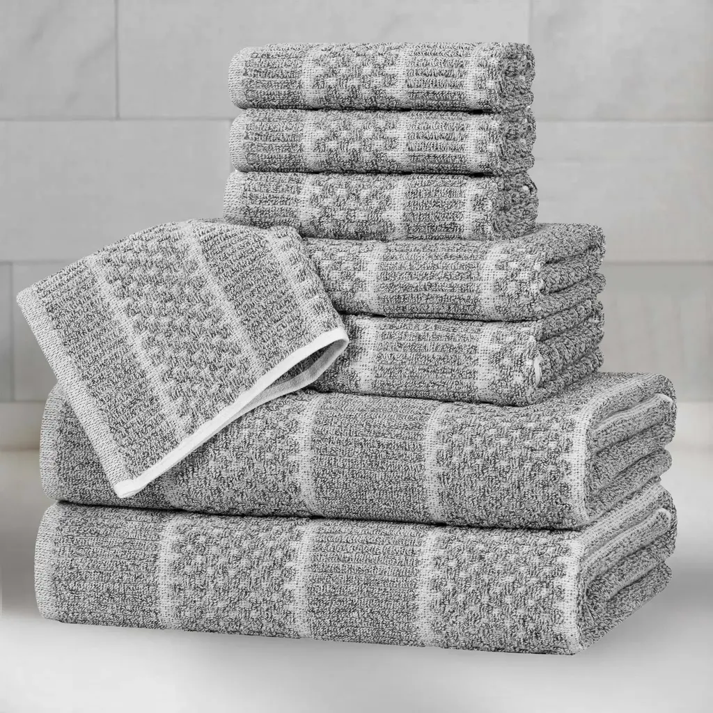 8 Piece Cotton Bath Towel Set, Cool Grey