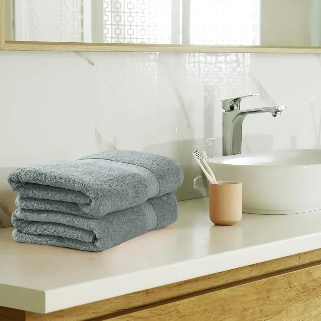 The towel sets for bathroom clearance are manufactured skillfully with 100% ring-spun cotton making the towels lightweight and highly absorbent. The premium quality of the bathroom towel set is meant to give a soft and delicate feel to your providing the care your skin deserves. The bath towels set includes a variety of towels: 2 bath towels, 2 hand towels, and 4 washcloths to ideally cater to all your drying, lounging, and cleaning needs sufficiently. The towels for bathroom absorb moisture significantly and dry promptly.