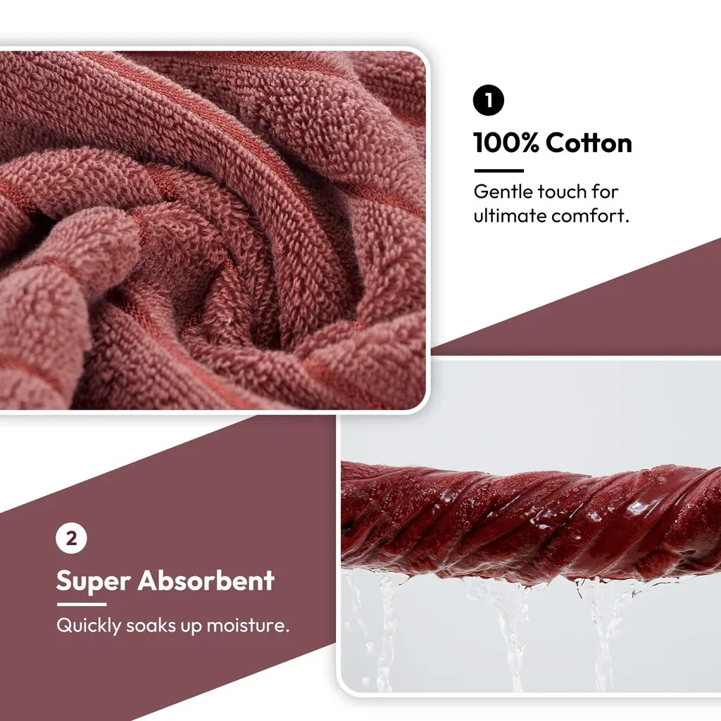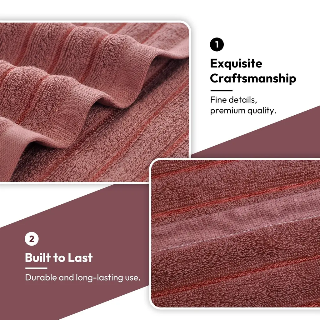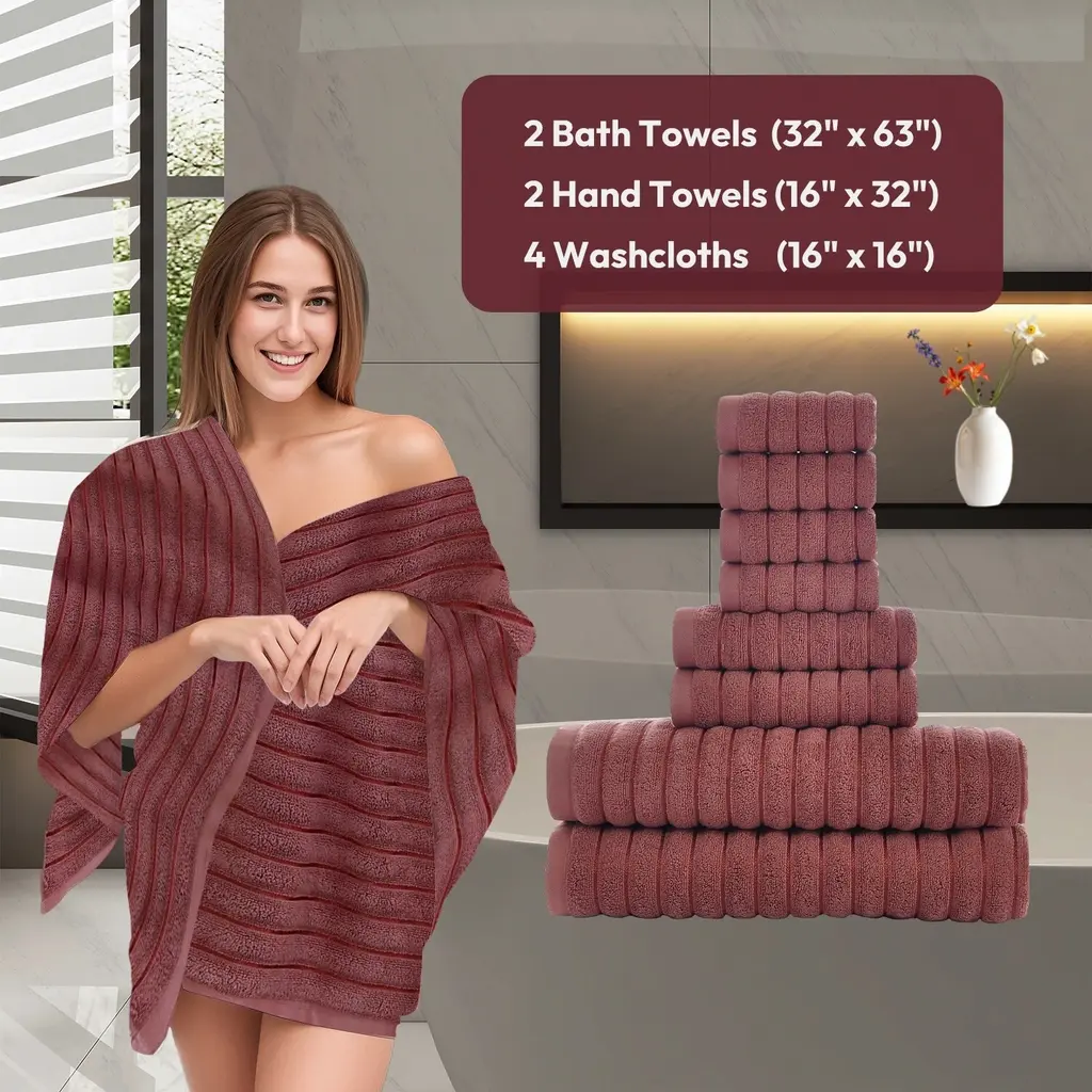 8 Piece Oversized Bath Towel Set, 100% Cotton Bath Towels, Highly Absorbant Bordered Towels - Rosy