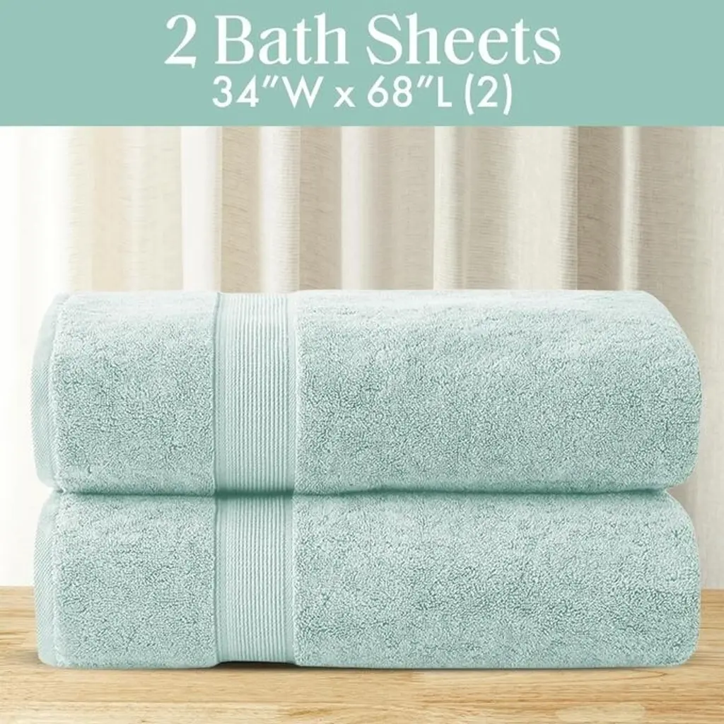800gsm Extra Large Bath Towels (34“ X 68” 2-Pack) 100% Cotton Bath Towel Set Highly Absorbent Hotel Spa Quality - 68"l X 34"w - Seafoam