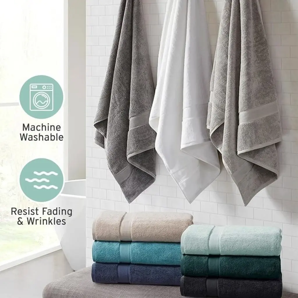 This bath towel set is made of 100% premium long-staple cotton with double-stitched sides for durability. Contains no substances or chemicals that may affect the quality and therefore provides excellent comfort and health Made of high quality long-staple cotton that is highly absorbent and has a soft luxurious feel. Double loop construction adds thickness and ensures less lint. Makes it durable - if you wash it before first use, it will last. Please machine wash gently in cold water with the same color. Use non-chlorine bleach only when needed. Avoid contact with products containing benzoyl peroxide. Tumble dry at low temperature and remove promptly. Do not iron. Fold towels neatly and store in a dry, ventilated place. Before use, simply shake the towel to restore fluff and pile.