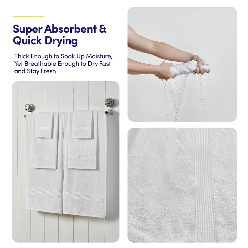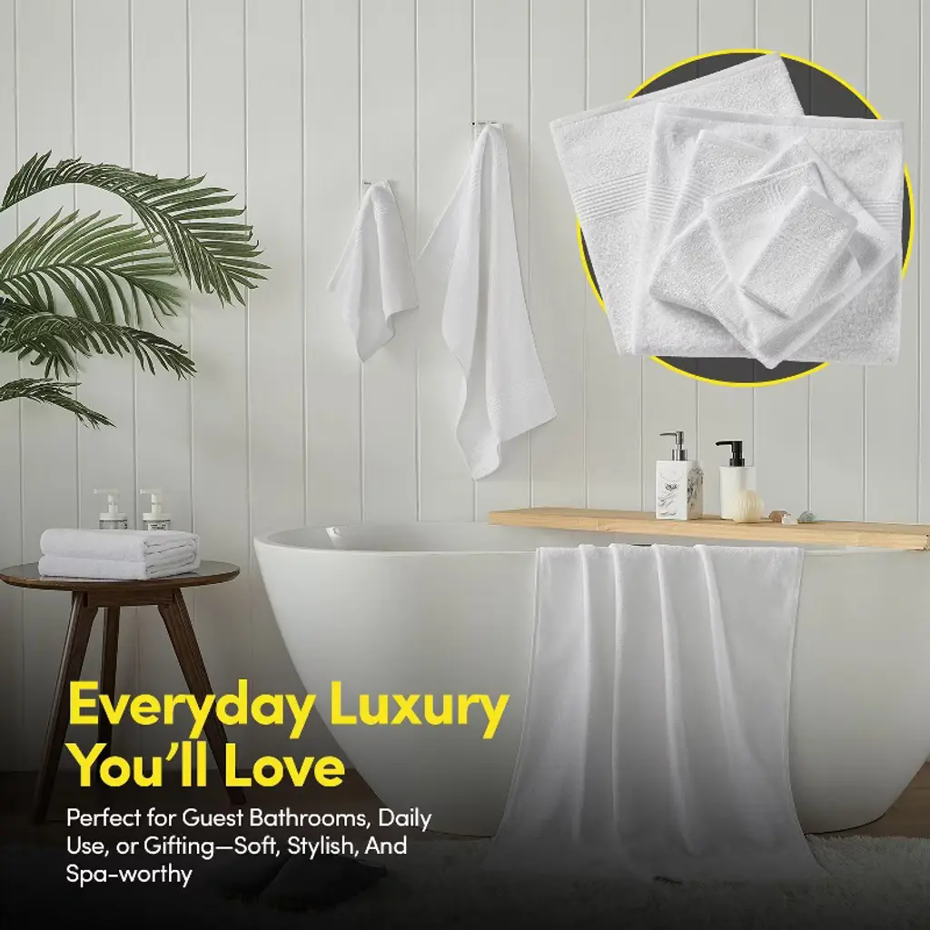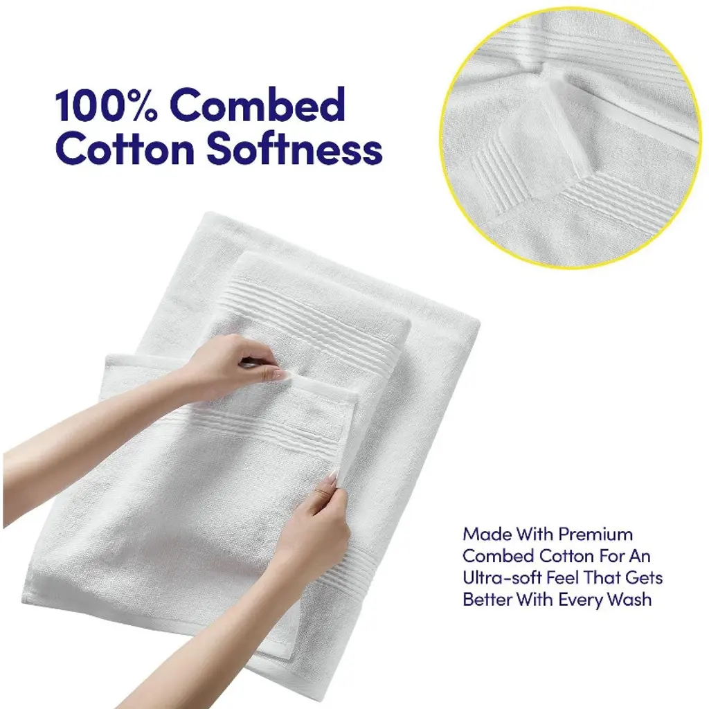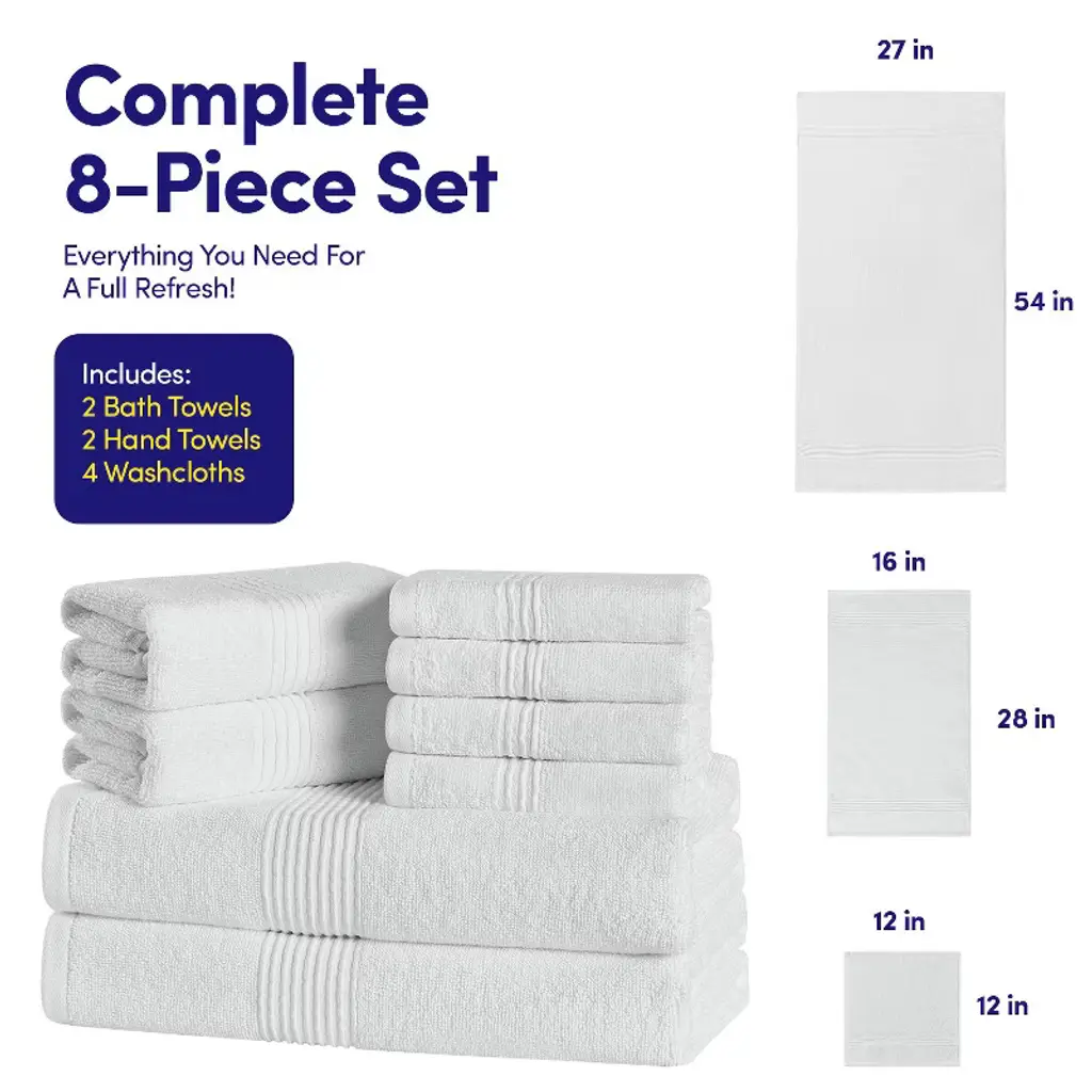 8Pc 100% Combed Cotton Towel Set (2 Bath, 2 Hand, 4 Wash) By Sweet Home Collectiontm - White