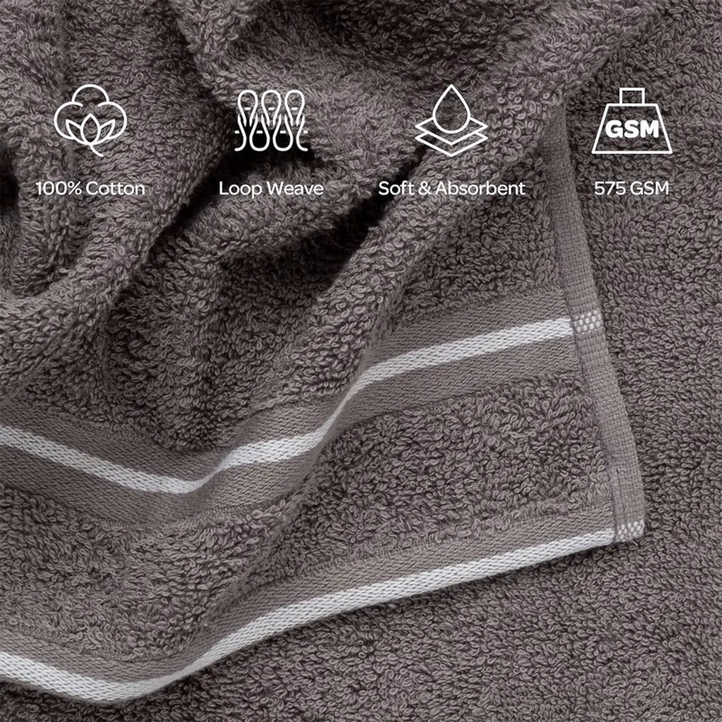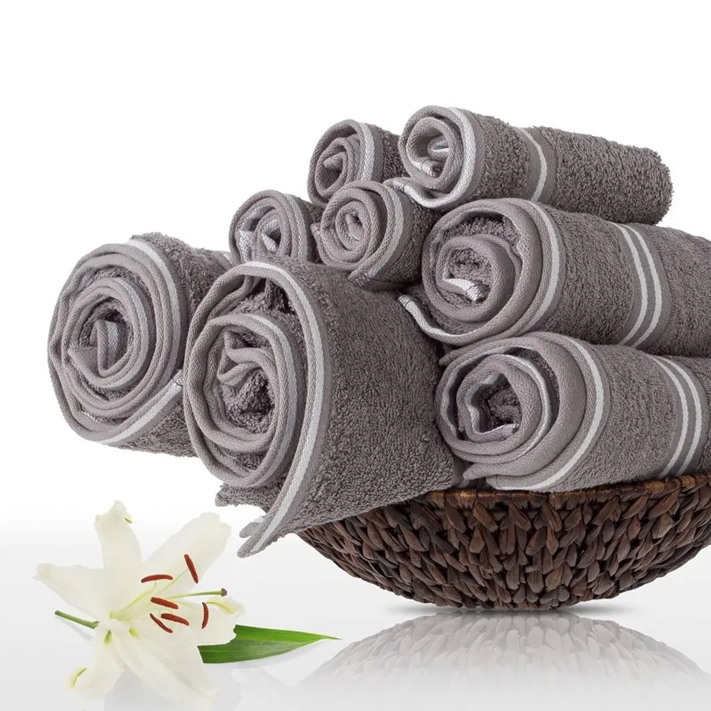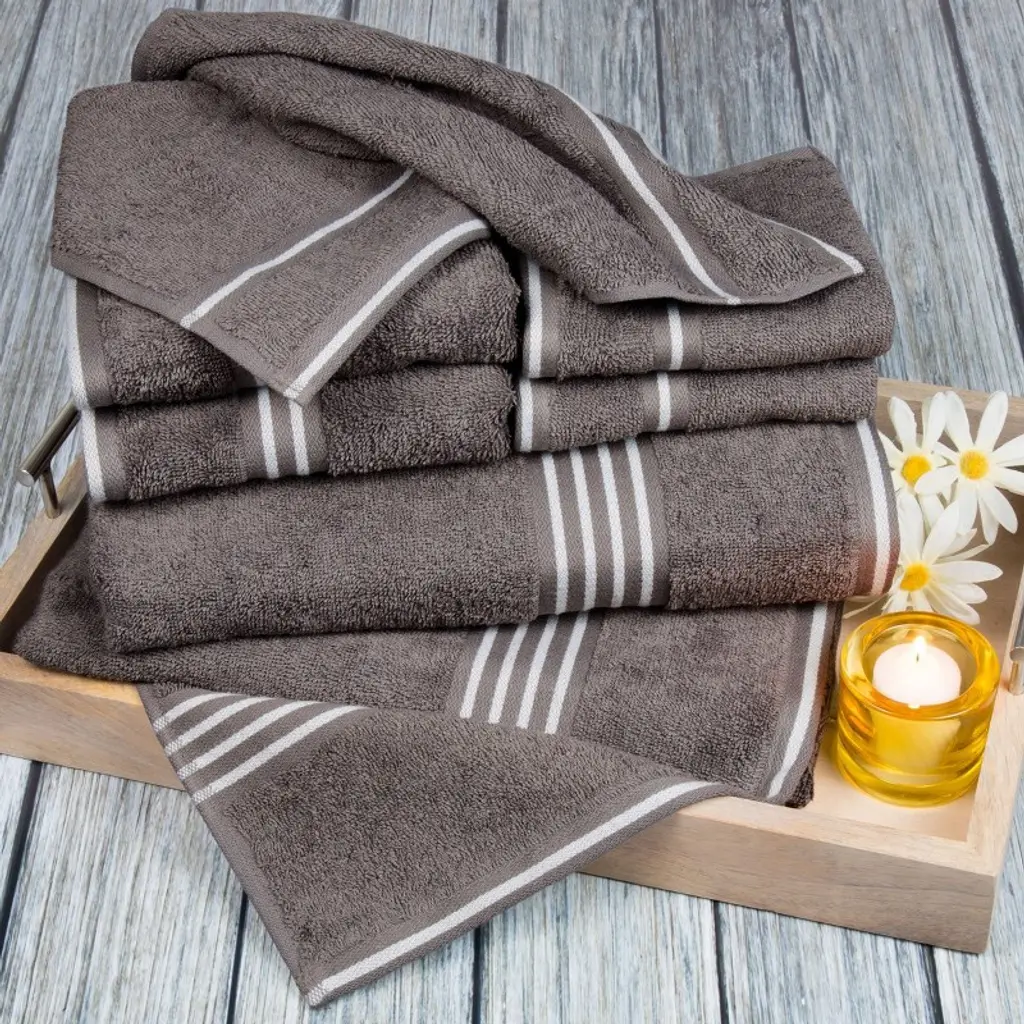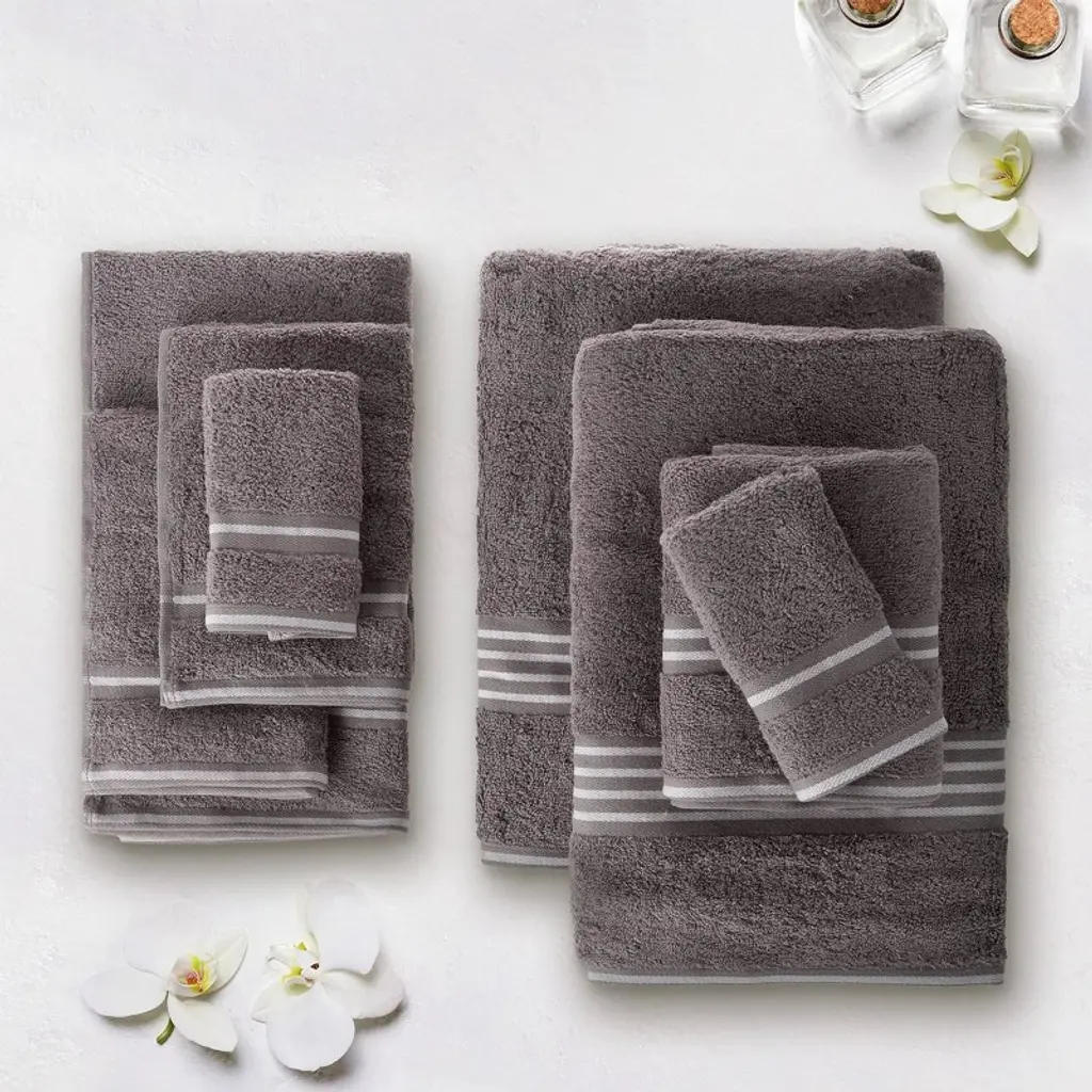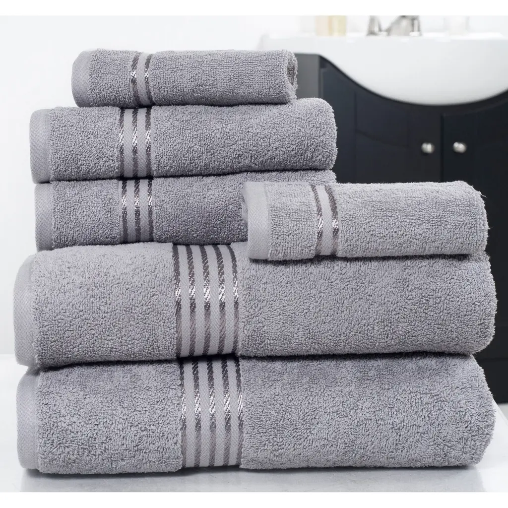 8Pc Striped Bath Towel Set Silver - Yorkshire Home: Cotton, Heavyweight, Machine Washable