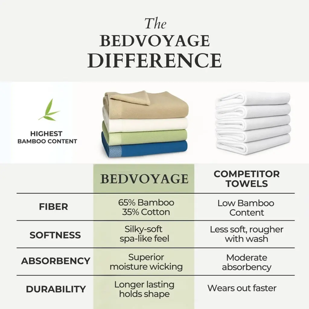 Upgrade your Bath Towels to spa-quality softness and experience true luxury. Our Viscose from Bamboo cotton Towels are hypoallergenic and super absorbent, so you dry off quicker while still comforting sensitive skin. Our super soft towels are resistant to bacteria, odor and mildew, staying fresh longer than ordinary cotton towels. Viscose from Bamboo has UV resistant qualities making the towels versatile for bath, beach, or pool time. Set includes: 2 Bath Towels 30”x 54”, 2 Hand Towels 16”x27”, 4 Washcloths 13”x 13”. Ultra-absorbent plush loop, 600 GSM.
