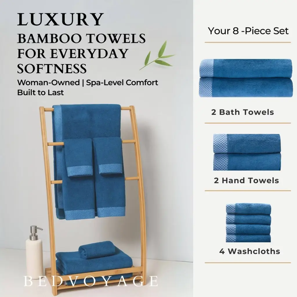 8Pc Viscose From Bamboo Luxury Bath Towel Set Indigo - Bedvoyage