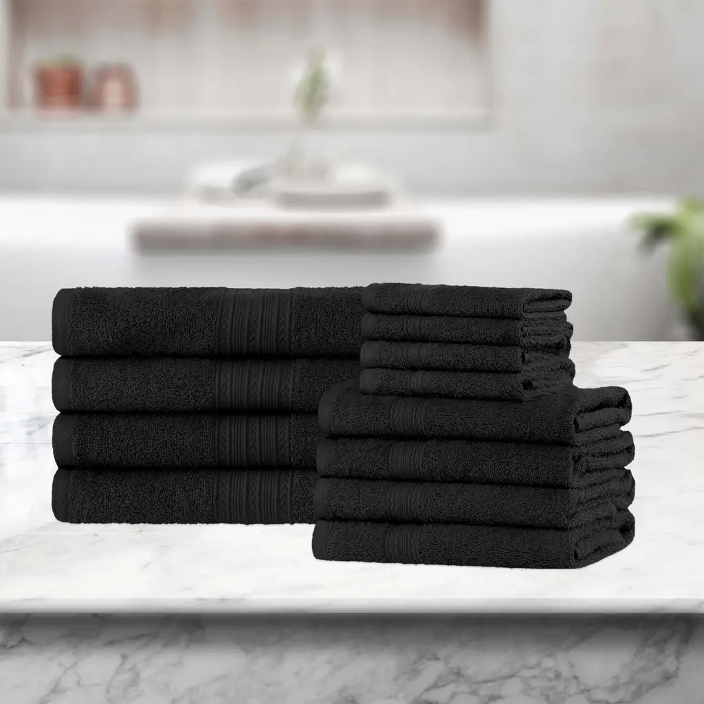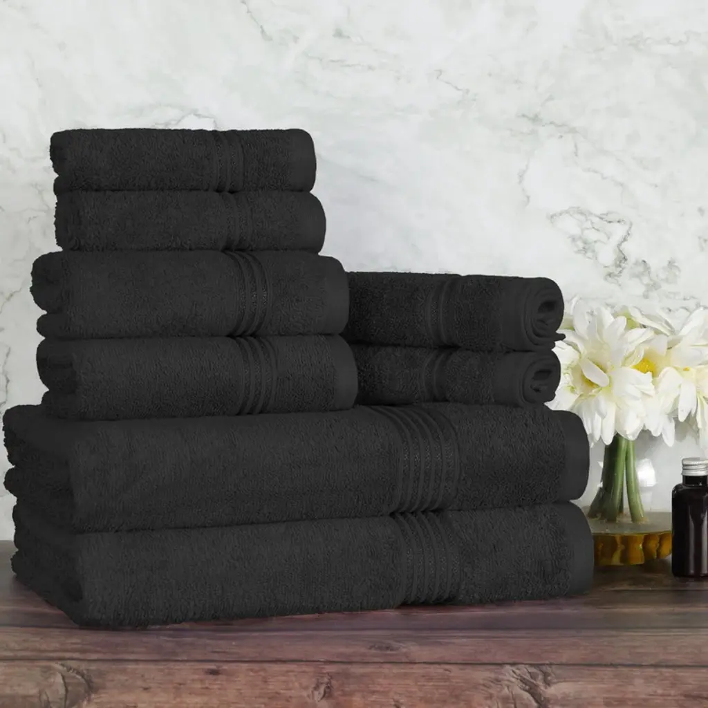 A1hc Bath Towel Sets, 100% Ring Spun Cotton, Zero Twist, Highly Absorbent, 500 Gsm Low Lint, Quick Drying Bathroom Towel Sets - Towel Sets Pack Of 12 - Black Onyx