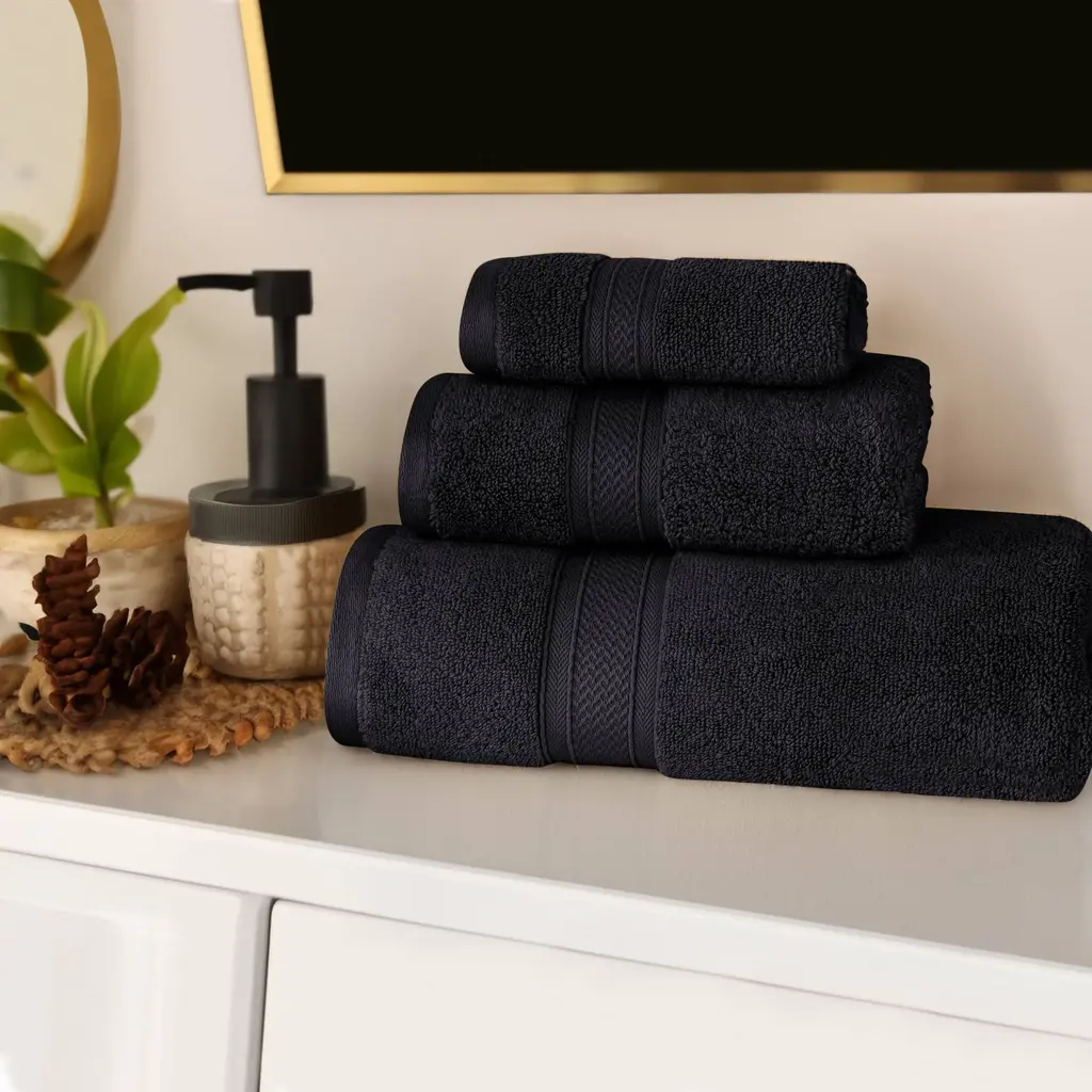 A1hc Bath Towel Sets, 100% Ring Spun Cotton, Zero Twist, Highly Absorbent, 500 Gsm Low Lint, Quick Drying Bathroom Towel Sets - Towel Sets Pack Of 3 - Black Onyx