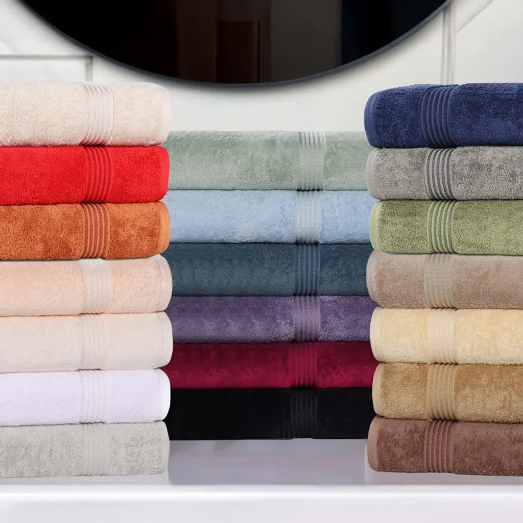 Our Egyptian-Like Cotton Plush Absorbent Bathroom Towel Set includes everything you need for your bathroom refresh. Each towel is made from a plush Egyptian-Like Cotton that has a highly absorbent terry weave designed to keep you cozy and dry. The decorative rope-style trim border is easy to pair with traditional or modern interiors. The wide variety of colors to choose from works seamlessly with vibrant and neutral color palettes. Update your bathroom decor with this lovely set of bathroom essentials.