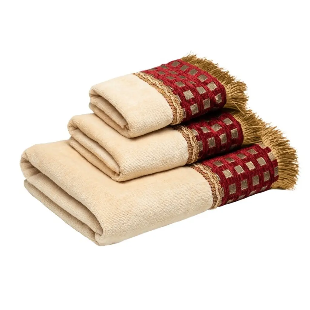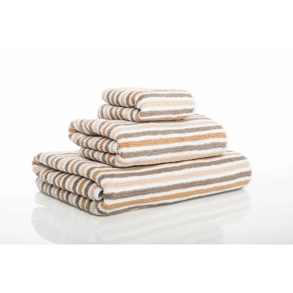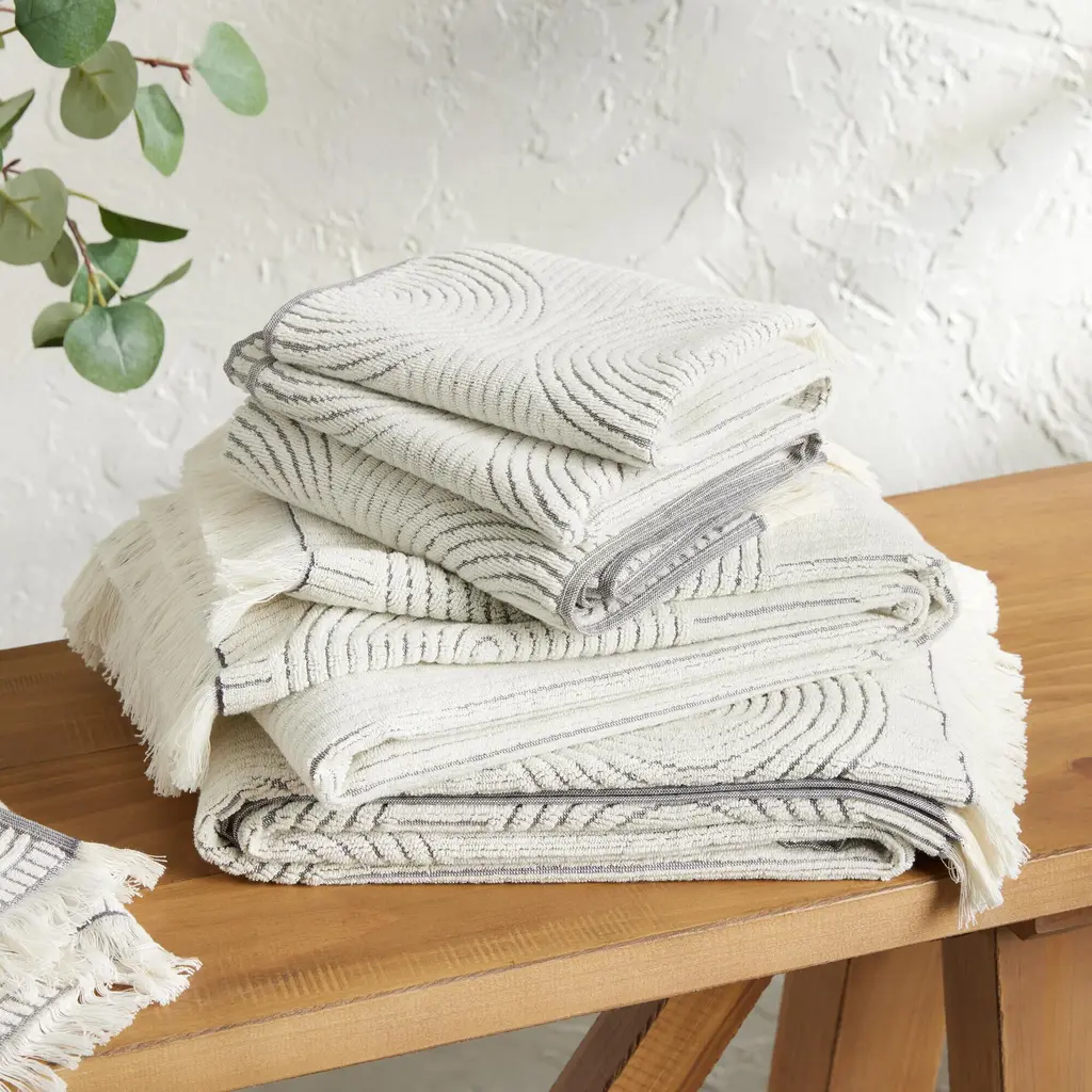 Made of superbly soft cotton, our exclusive towel collection updates any bathroom with a sculpted geometric line design. These mustard-yellow and white hand and bath towels are a delight to wrap yourself up in and make a modern decor display.
